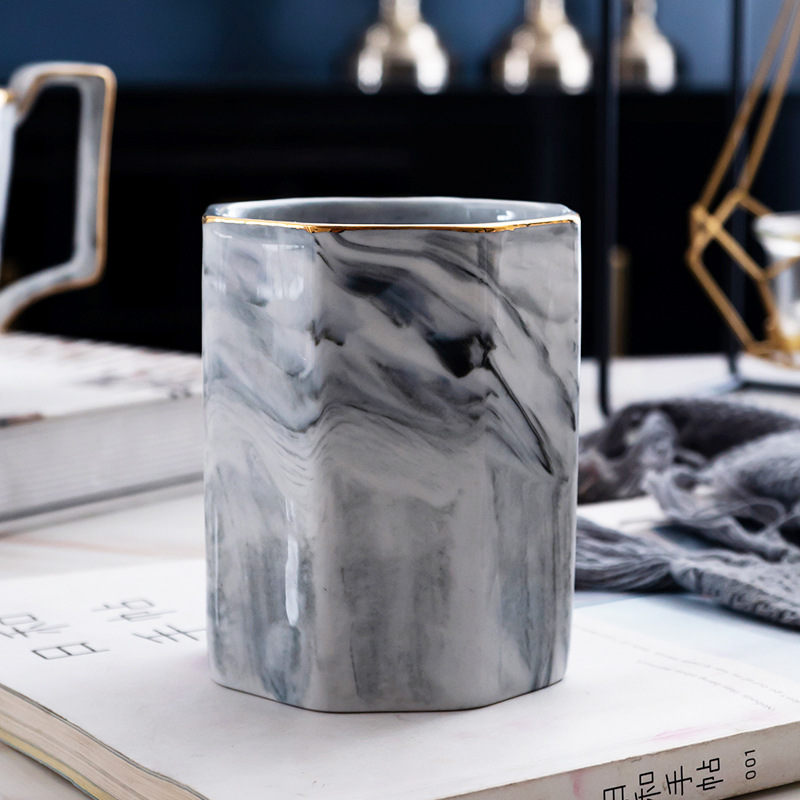북유럽 대리석 패턴 펜 탱크 크리 에이 티브 세라믹 펜 탱크 메이크업 브러시 탱크 저장 탱크 사무실 장식 로고에 대해
