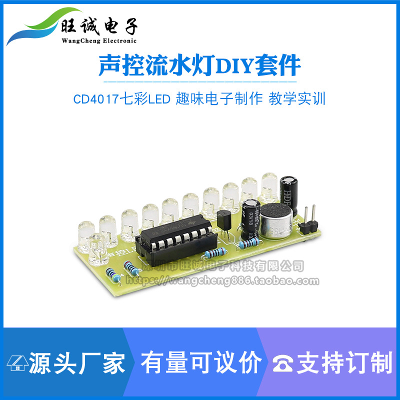 음성 제어 LED 흐르는 물 조명 키트 CD4017 컬러 조명 제어 DIY 재미있는 전자 생산 교육 및 훈련 부품스토어 가기