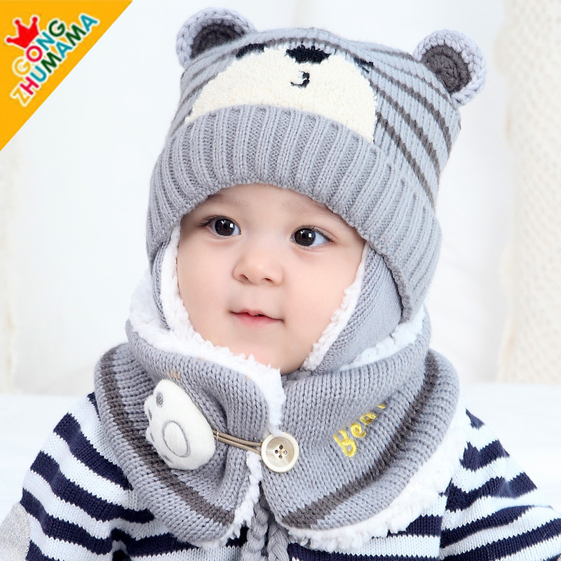 도매 공주 어머니 겨울 어린이 모자 아기 모자 턱받이 곰 모양 비니 세트 5306스토어 가기