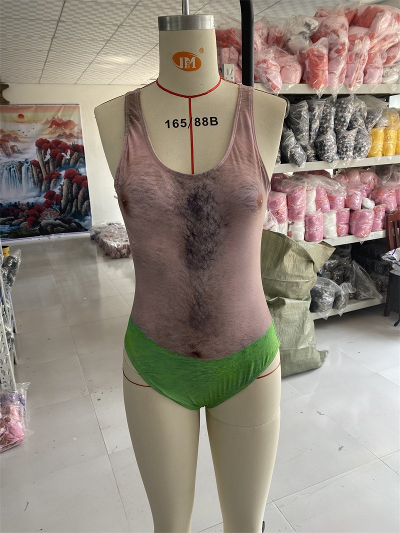 크로스 보더 새로운 유럽과 미국 여성의 모조 피부 가슴 머리 원피스 수영복 스킨 컬러 비키니 수영복 도매