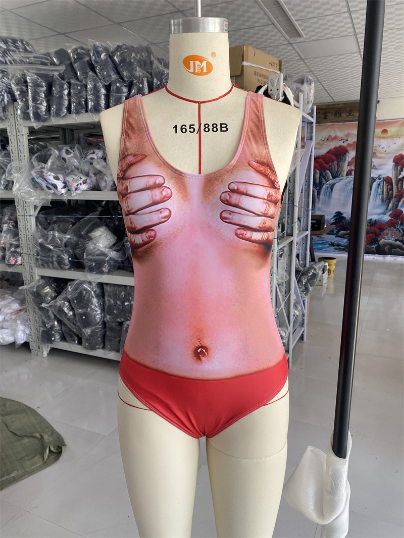 크로스 보더 새로운 유럽과 미국 여성의 모조 피부 가슴 머리 원피스 수영복 스킨 컬러 비키니 수영복 도매스토어 가기