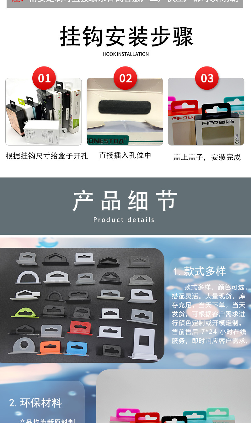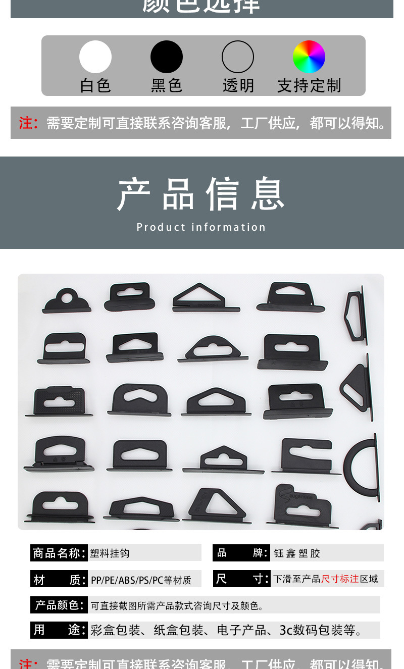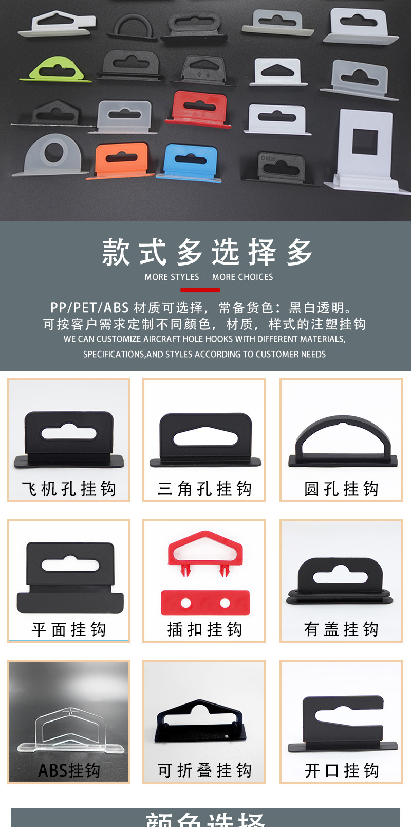스팟 항공기 구멍 후크 pp 플라스틱 후크 항공기 버클 포장 색상 상자 pe 플라스틱 교수형 버클 투명 PVC 후크