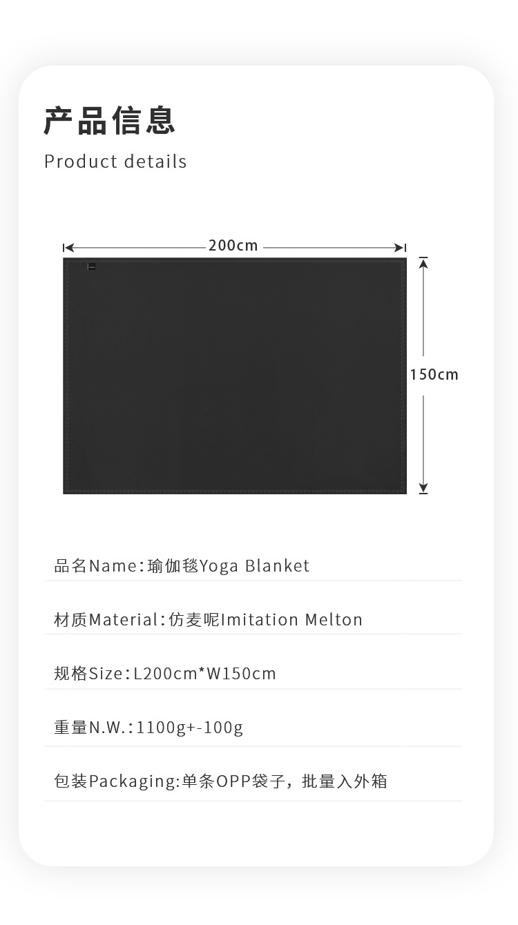 • 두꺼운 요가 담요 - 검정색