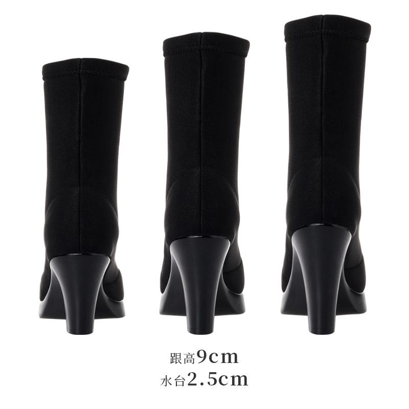 봄과 가을 미드 부츠 블랙 스트레치 부츠 슬림 룩 부츠 뾰족한 하이힐 쇼 신발 겨울 기모 마틴 부츠 여성 손질 부츠