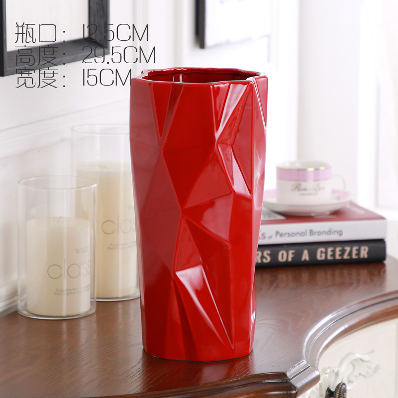 도매 세라믹 붉은 꽃병 결혼식 축제 장식품 거실 어두운 빛 간단한 현대 가정 장식 꽃꽂이