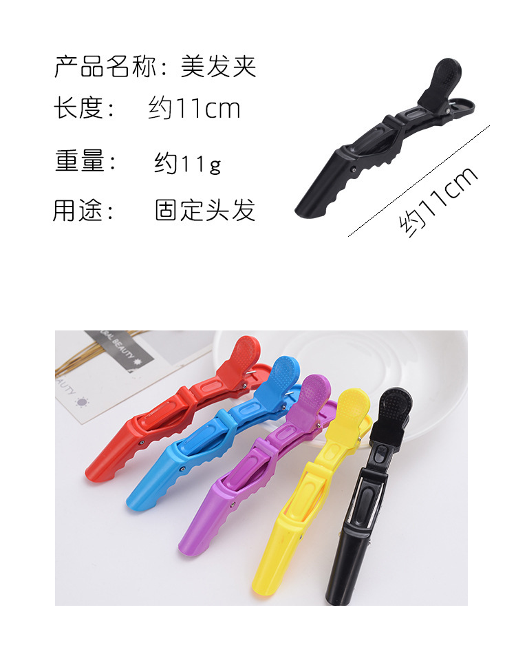 鳄鱼夹:在做卷发或造型时,可以先把头发分成几个区.用鳄鱼夹将分好的头发夹住.方便在卷发时别的头发掉下来.质量很好,很实用.比一般夹子夹的更多,更牢