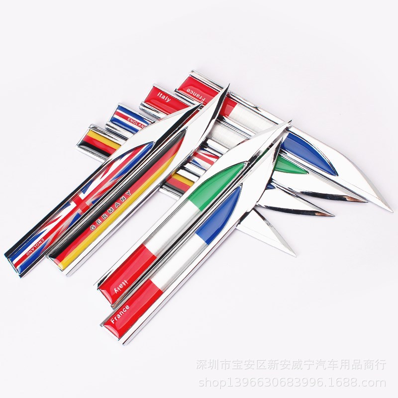 자동차 독일 프랑스 영국 이탈리아 국기 금속 수정 블레이드 펜더 라벨링 바디 장식스토어 가기