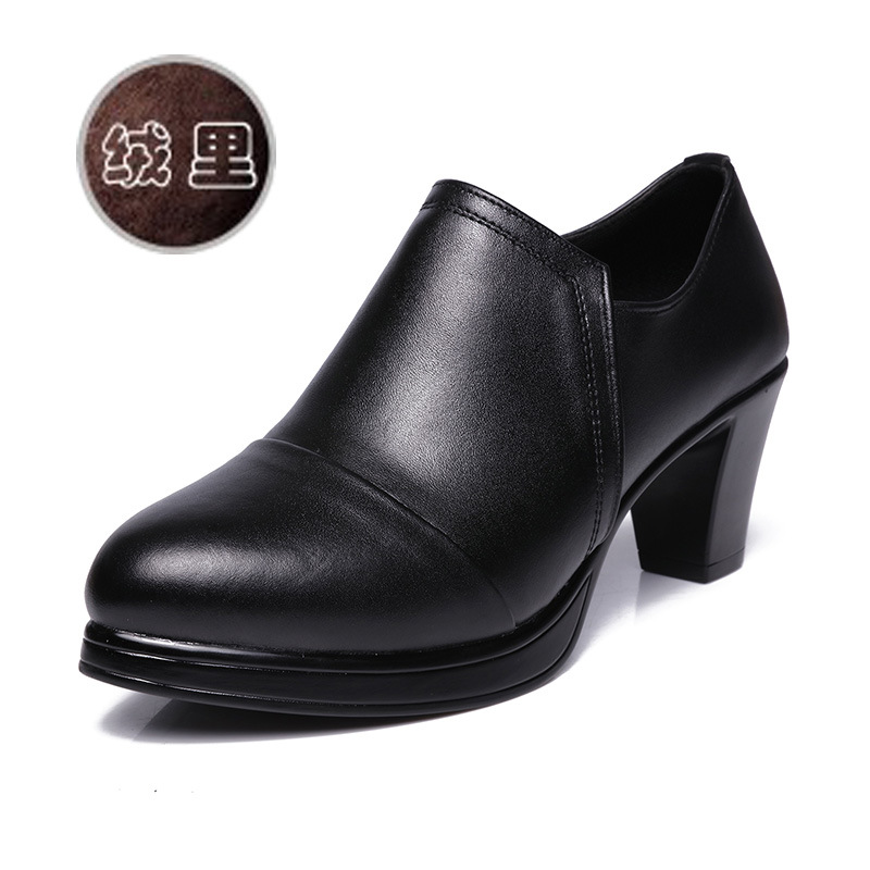2024 지적 발가락 여성 패션 신발 두꺼운 발 뒤꿈치 깊은 입 전문 하이힐 방수 플랫폼 중간 발 뒤꿈치 봄과 가을 여성 신발스토어 가기