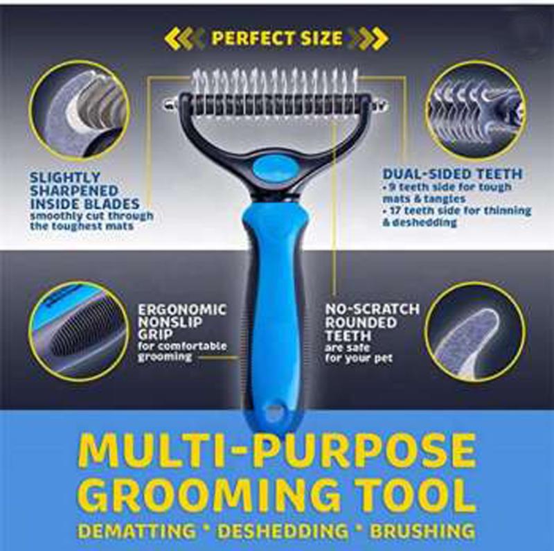 국경 간 애완 동물 빗, 양면 매듭 빗, 개 빗, 매듭 커터 용품, 개 머리 매듭 제거 빗