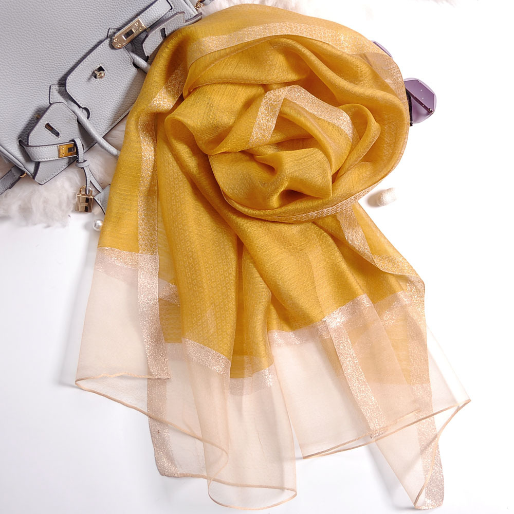 여성용 얇은 실크 스카프, 한국 스타일, 다용도, 금박 마감 거즈 스카프, 얇은 실크 울 스카프