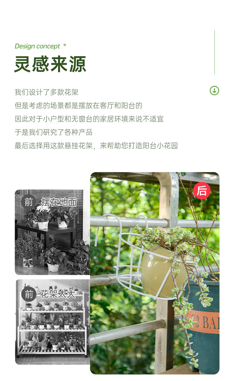 발코니 꽃 냄비 매달려 꽃 랙 난간 벽 매달린 철 랙 그린 로즈 고기 화분 꽃 라운드 저장 랙스토어 가기