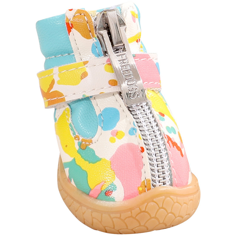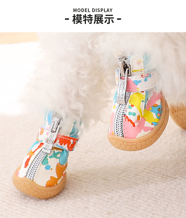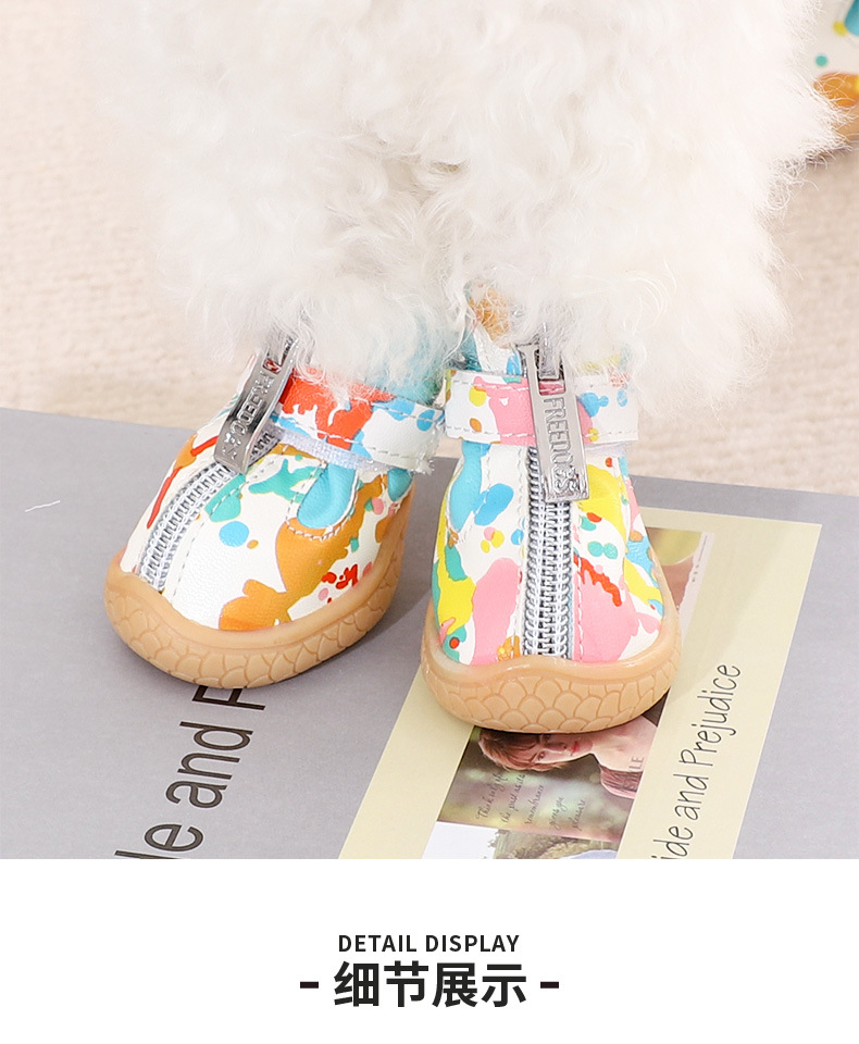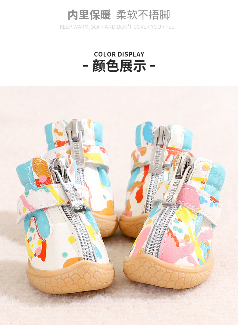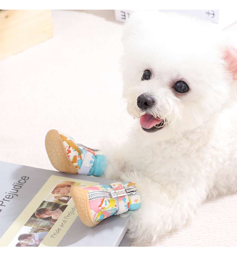 작은 개 신발 가을과 겨울 작은 신발 통기성 테디 베어 애완 동물 기모 따뜻한 발 커버 미끄럼 방지 신발 커버