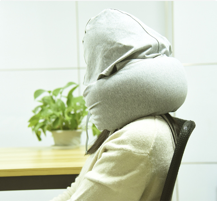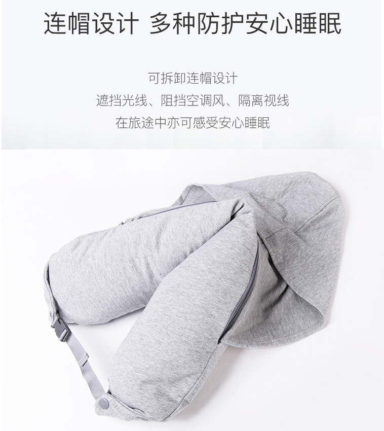 미세 입자 u자형 목베개 후드 여행 베개 일본식 무지 다기능 비행기용 후드가 있는 차광 목베개