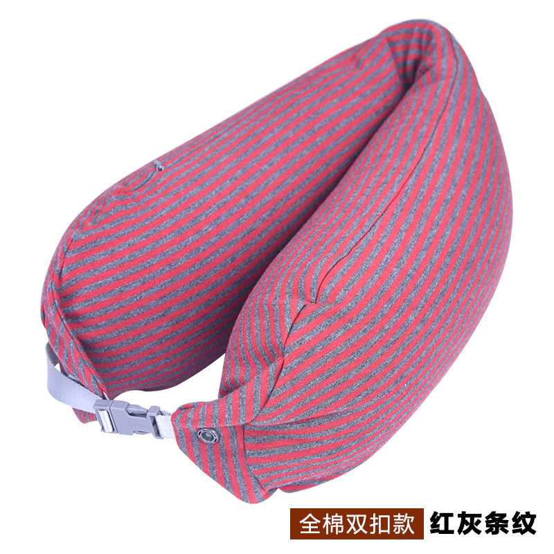 • 코튼 더블 버클 롱 베개/레드 그레이 스트라이프