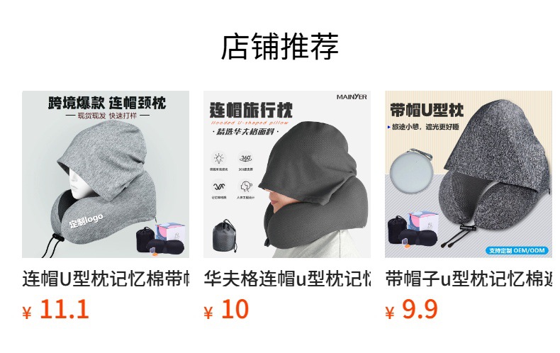 미세 입자 u자형 목베개 후드 여행 베개 일본식 무지 다기능 비행기용 후드가 있는 차광 목베개스토어 가기