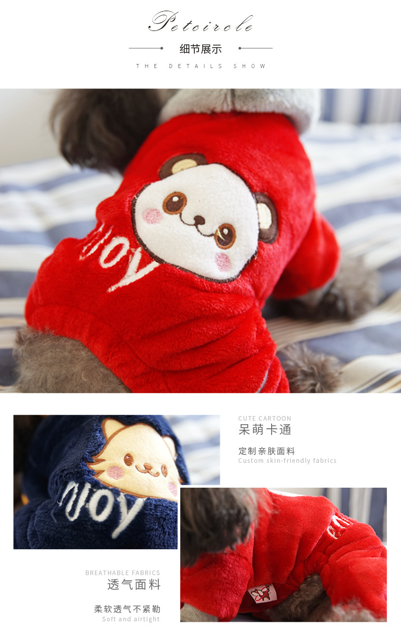 PETCIRCLE 애완 동물 고양이 개 옷 가을과 겨울 산호 양털 4 다리 따뜻한 패딩 파자마 변형 복장