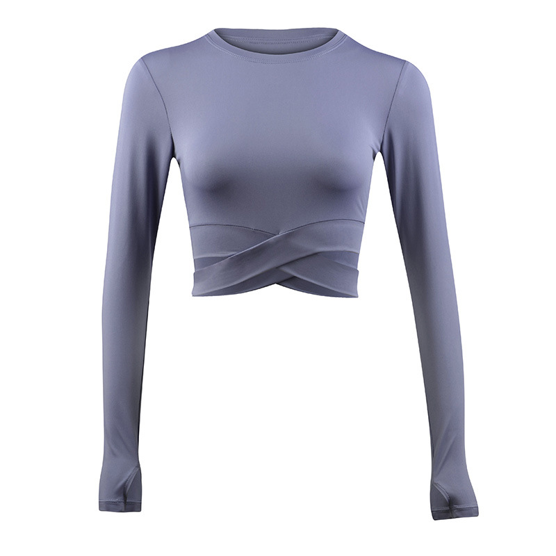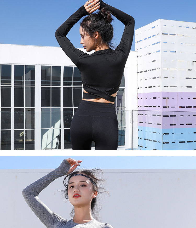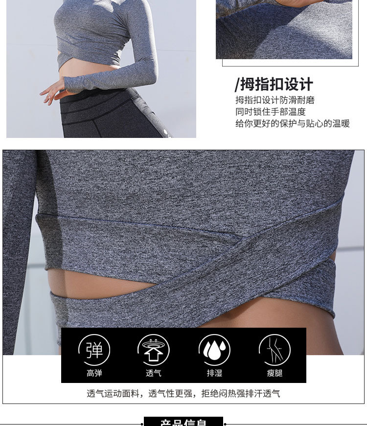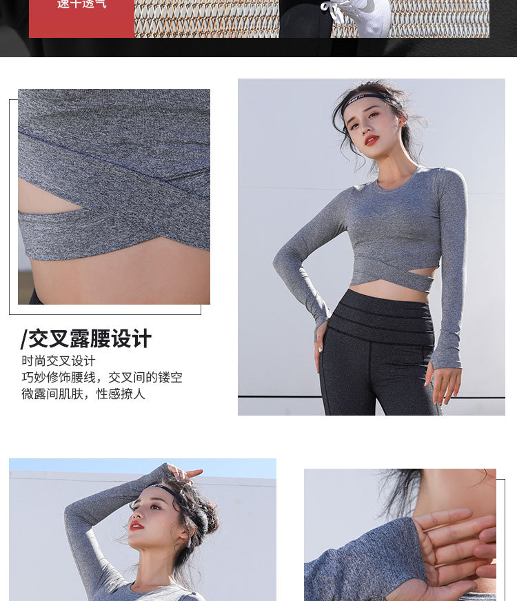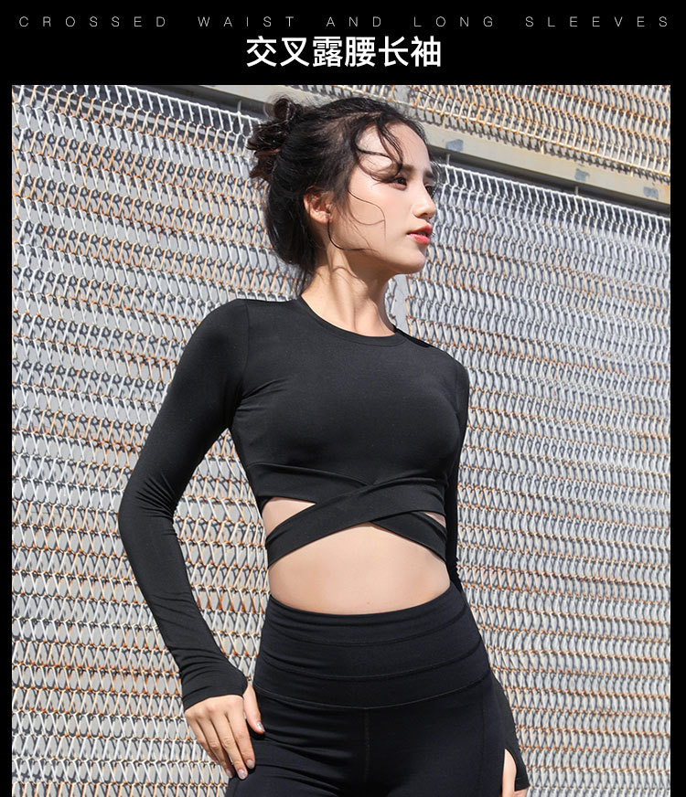 2025 가을/봄 피트니스웨어 여성용 긴팔 티셔츠, 요가 스포츠 배꼽 크로스 긴팔 속건 탑, 공장 도매스토어 가기