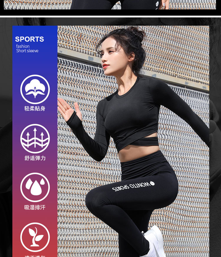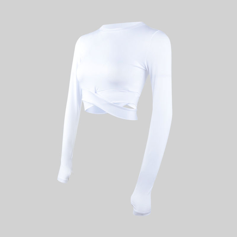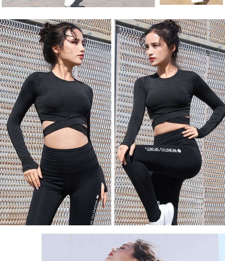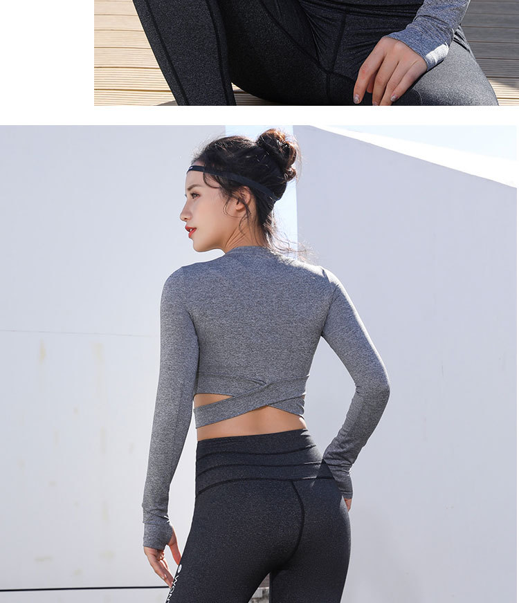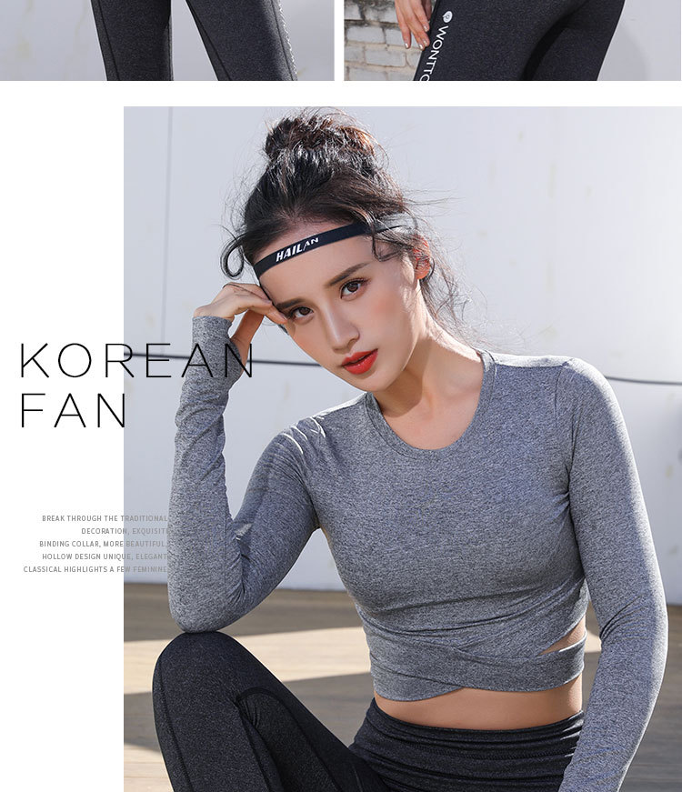 2025 가을/봄 피트니스웨어 여성용 긴팔 티셔츠, 요가 스포츠 배꼽 크로스 긴팔 속건 탑, 공장 도매스토어 가기