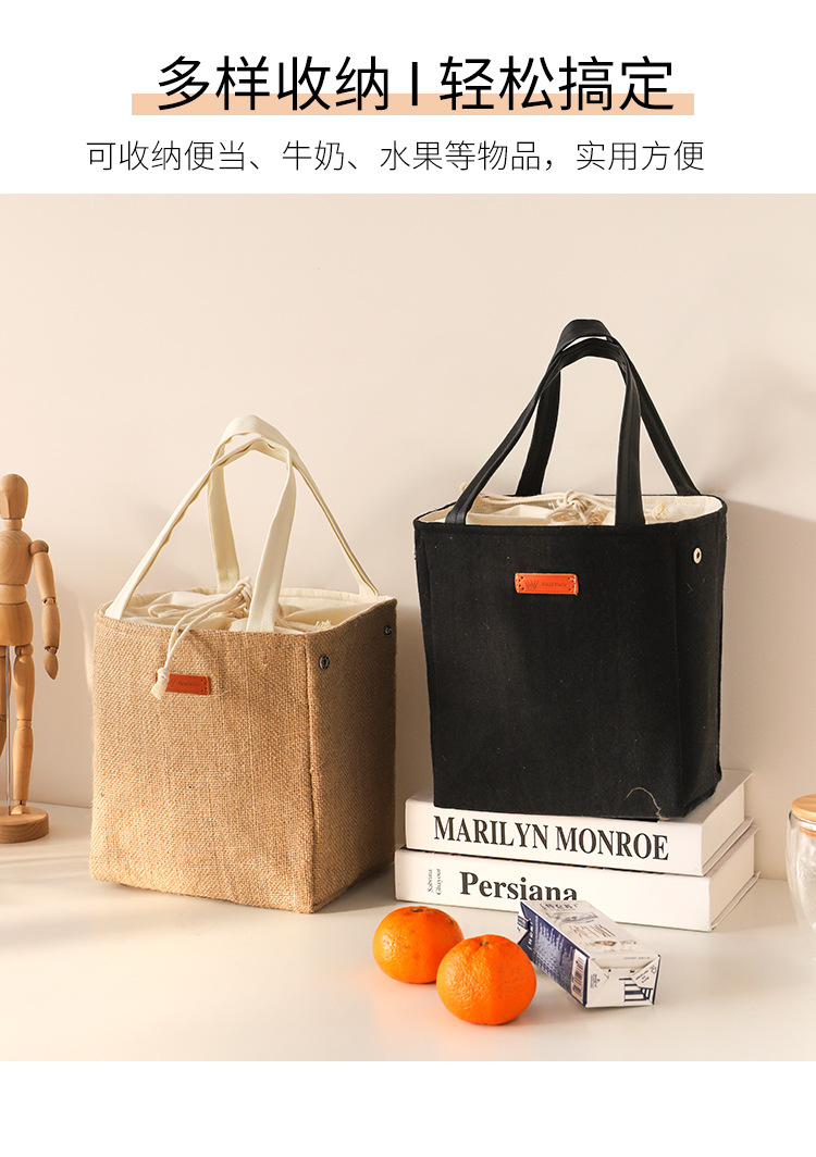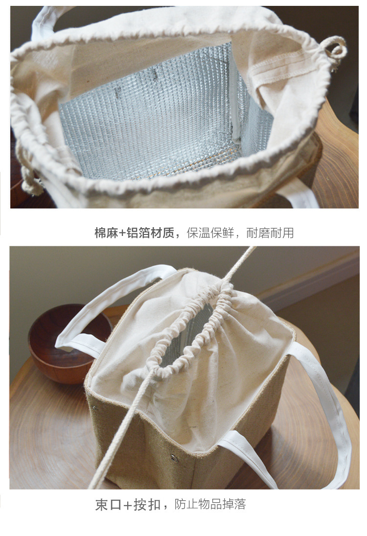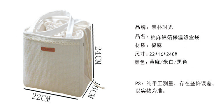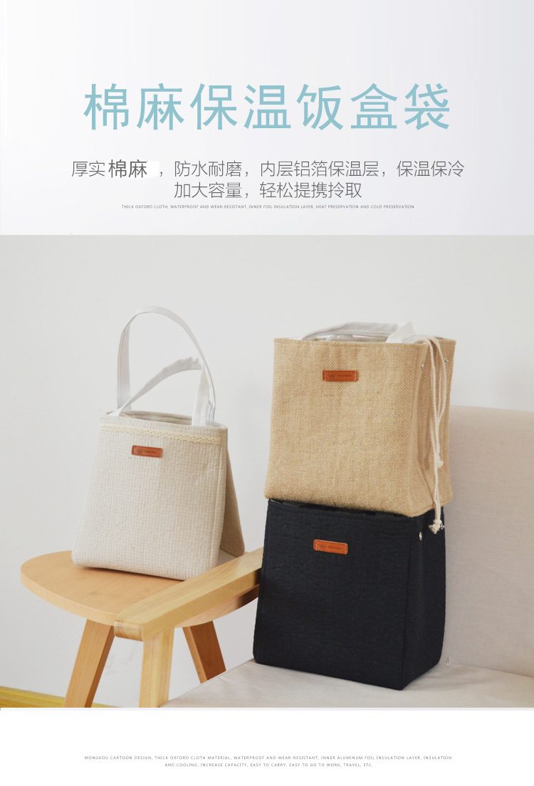 일본식 단열 도시락 가방 알루미늄 호일 감기 보존 피크닉 가방 걸쭉한면과 린넨 학생 도시락 휴대 도시락 로고