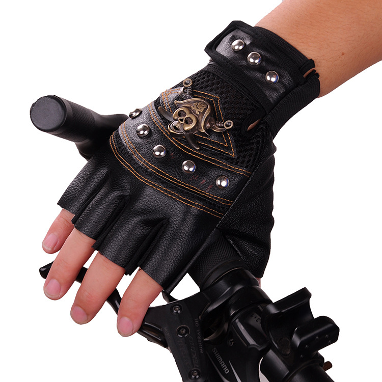 야외 스포츠 반 손가락 승마 장갑 남성용 PU 통기성 미끄럼 방지 산악 자전거 낚시 오토바이 가죽 새는 손가락 학생