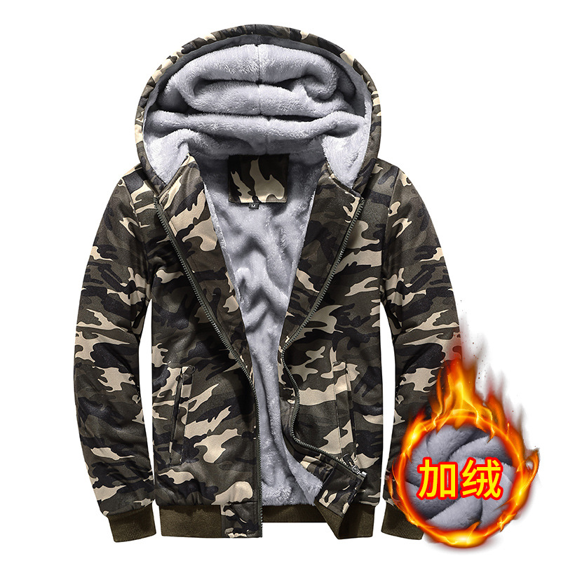위장 스웨터 남자의 겨울 새로운 기모 후드 스웨터 남자의 캐주얼 모든 일치 재킷 공장 직공급 대외 무역 남성복
