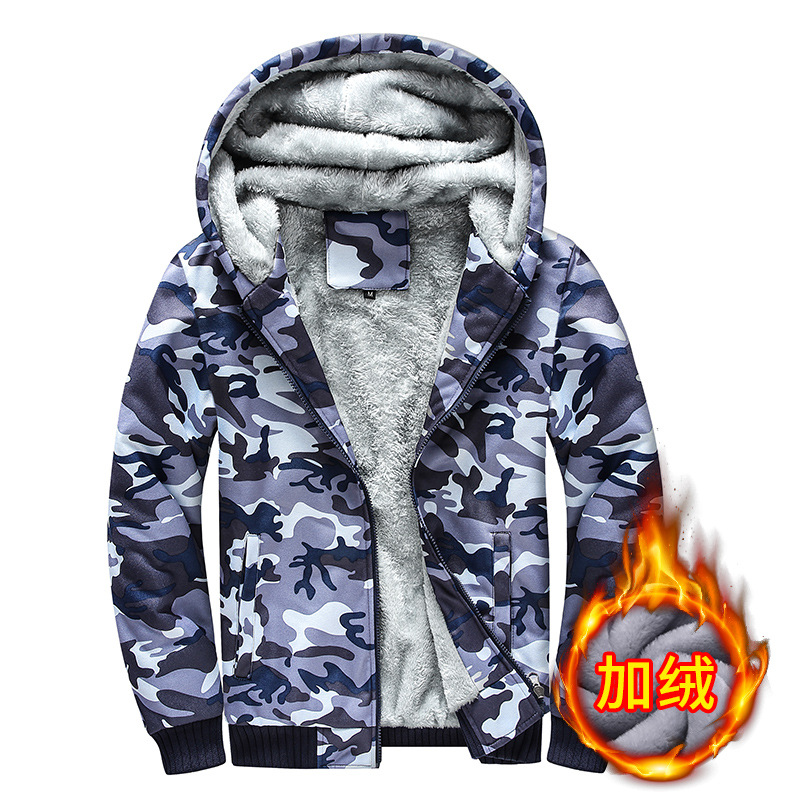 위장 스웨터 남자의 겨울 새로운 기모 후드 스웨터 남자의 캐주얼 모든 일치 재킷 공장 직공급 대외 무역 남성복스토어 가기