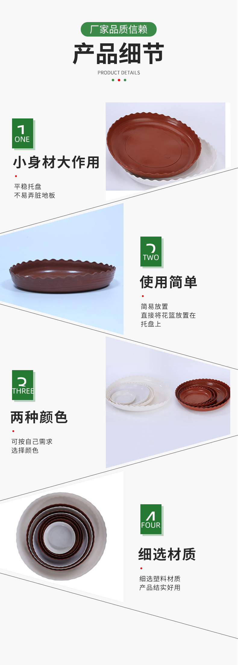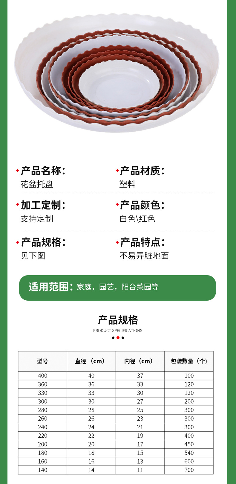 물 냄비에 부착 된 플라스틱 화분 트레이 프릴 두꺼운 둥근 플라스틱 화분 섀시 녹색 심기 다육 질 화분베이스스토어 가기