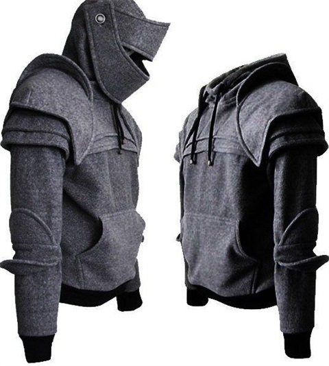 할로윈 스웨터 남성 기사 후드 풀오버 팔꿈치 가드 졸라매는 끈 마스크 캥거루 가방 단색 재킷 스웨터 코트 cos