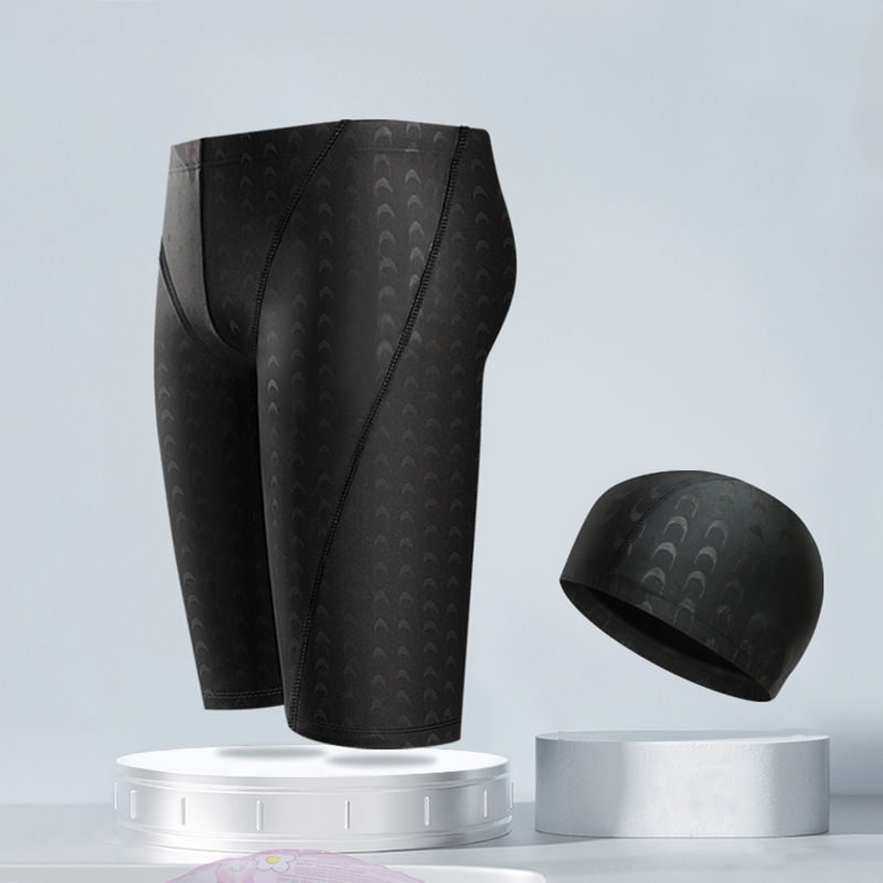 남자 수영 트렁크 모방 상어 피부 수영복 수영 모자 세트 경쟁 5 점 바지 방수 수영복 빠른 건조 수영 트렁크 도매