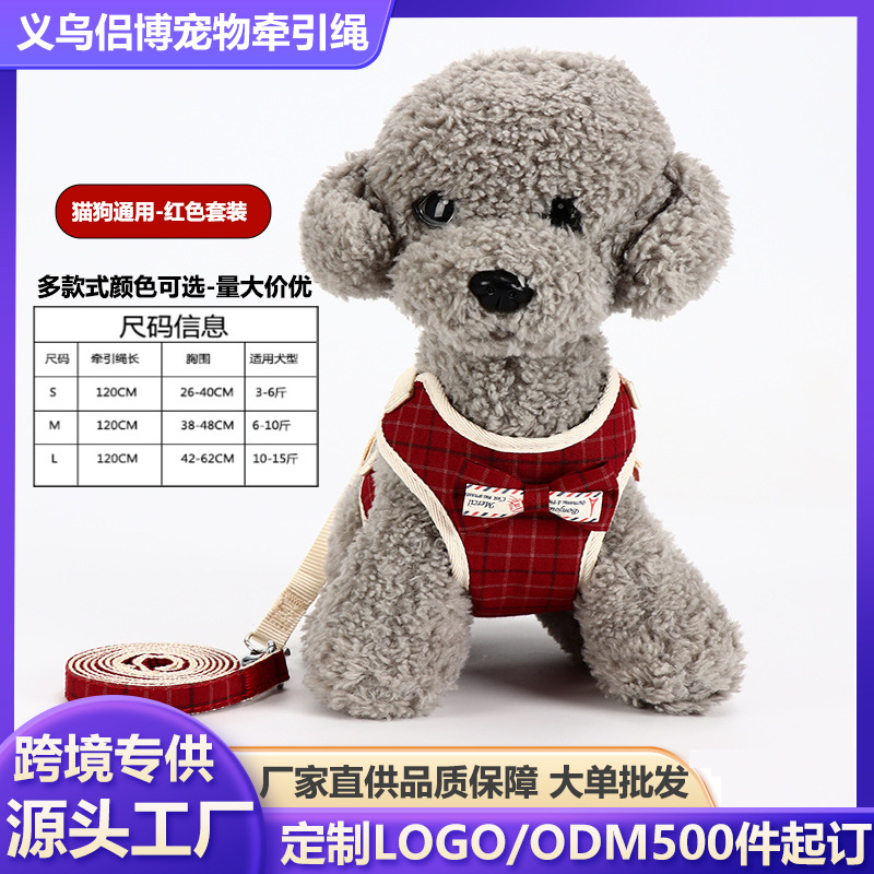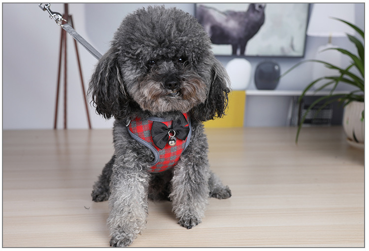 강아지 목줄 도매 조끼형 소형견 고양이 탈출방지 리본 체크무늬 만능 강아지 목줄 강아지 가슴줄