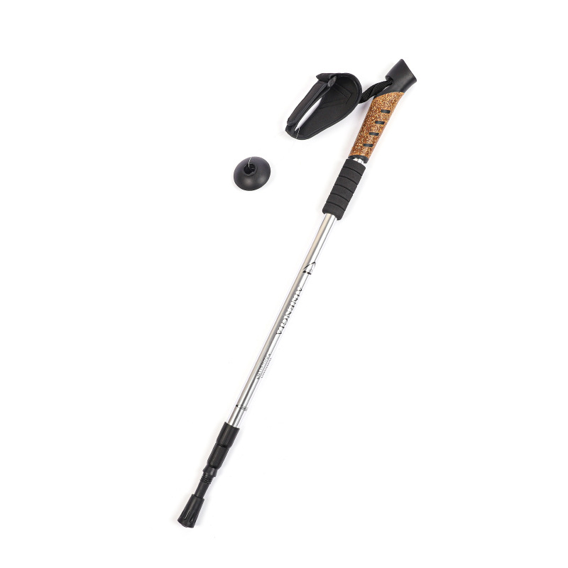 户外小号软木登山杖 超轻伸缩多功能折叠杖直柄手杖徒步爬山拐¥10.5