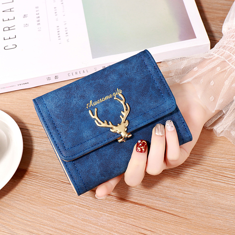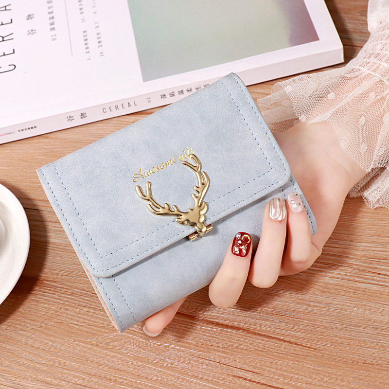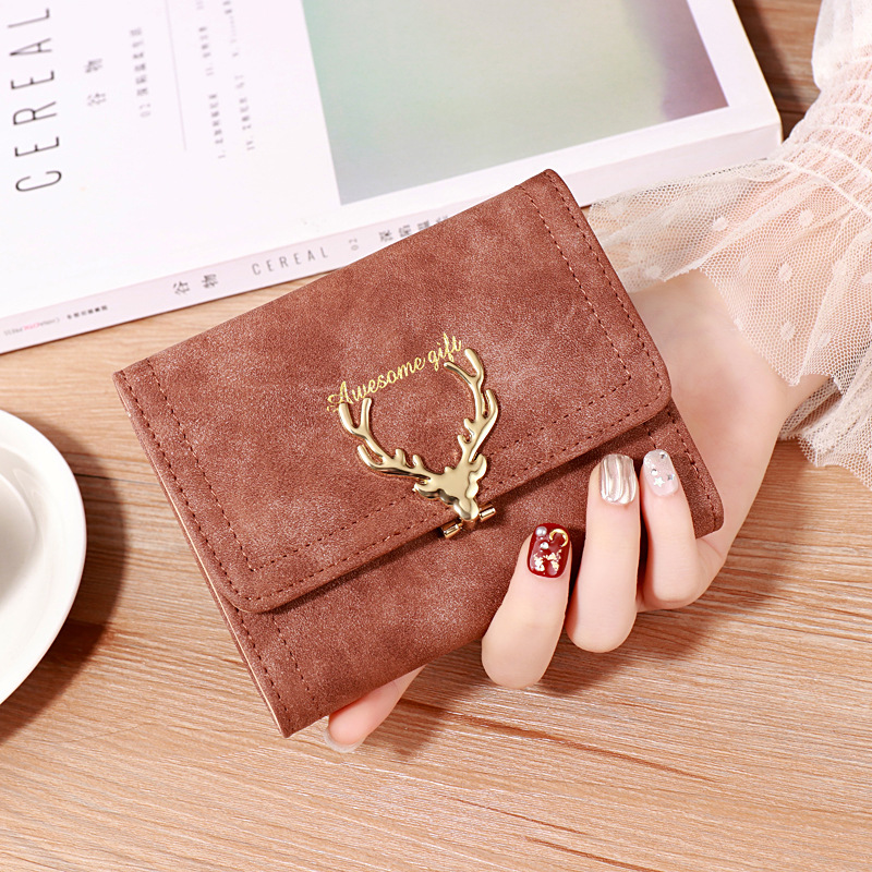 2022 한국식 짧은 지갑 봄 새로운 패션 젖빛 새끼 사슴 여성 가방 멀티 카드 홀더 클러치 동전 지갑