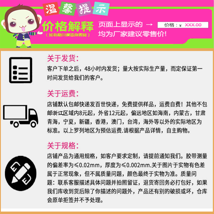 도매 인쇄 특수 생산 침묵 경고 포장 표현 큰 밀봉 투명 밀봉 테이프 종이 테이프스토어 가기