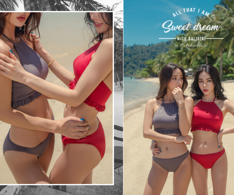 AliExpress의 도매 한국어 버전 작은 가슴 모여 배 비치 스파 비치 스플릿 비키니 여성 수영복스토어 가기