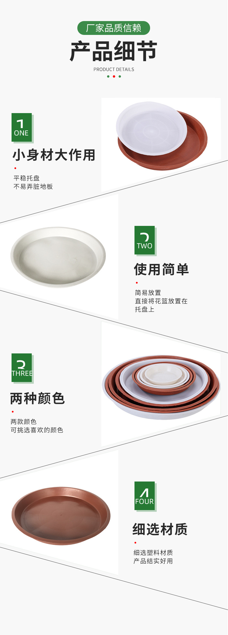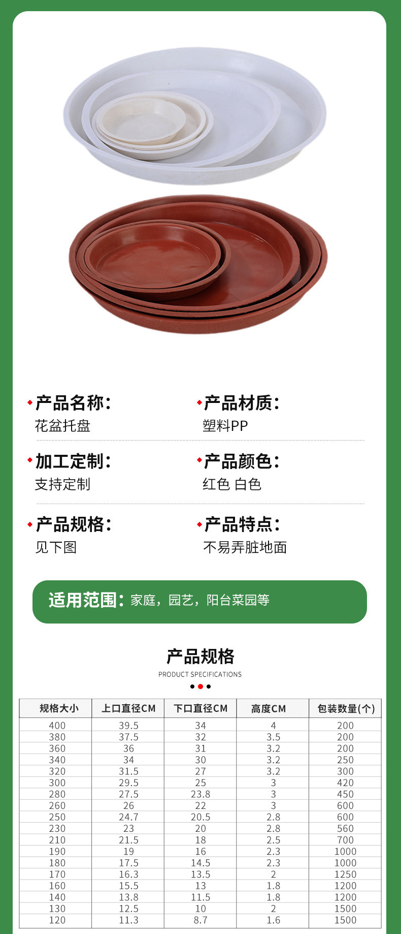 국경 꽃 냄비 기본 플라스틱 pp 수지 둥근 두꺼운 즙이 많은 트레이 물 트레이 녹색 식물 기본 꽃 냄비 트레이