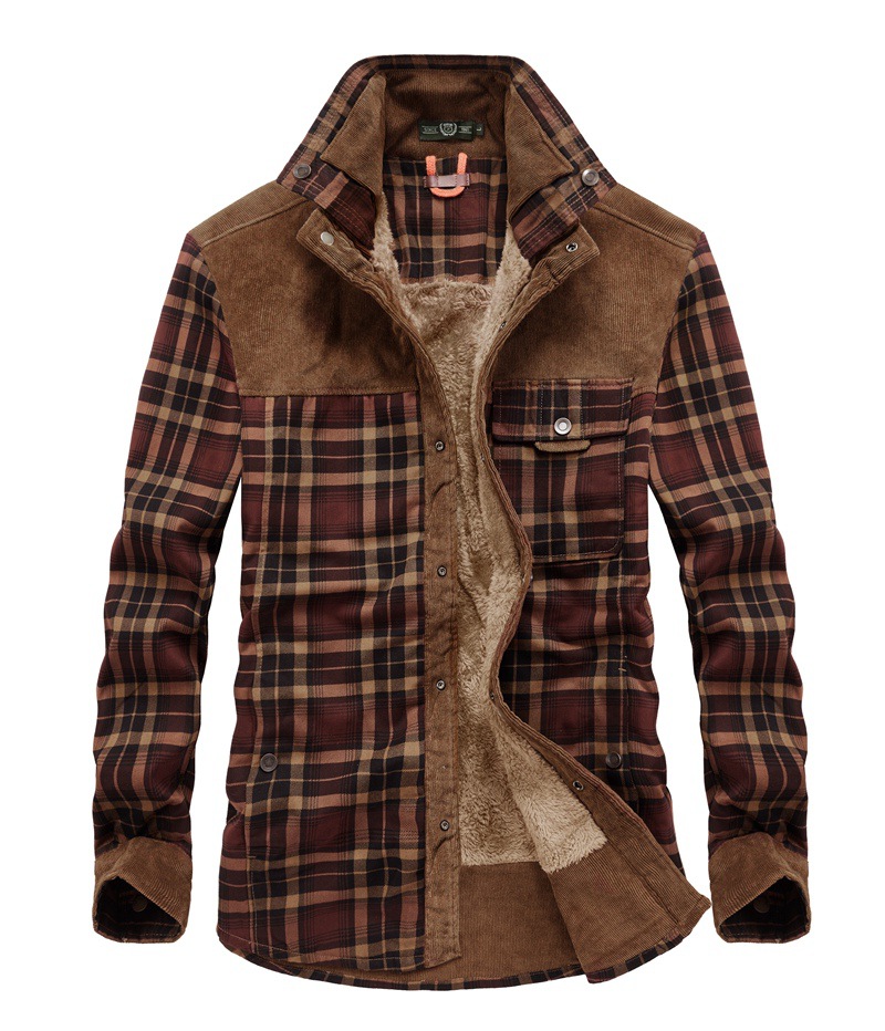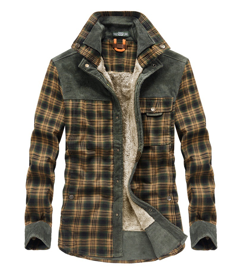 가을과 겨울 남자의 기모 두꺼운 긴 소매 셔츠 캐주얼 남자의 플러스 사이즈 면 격자 무늬 셔츠 13136