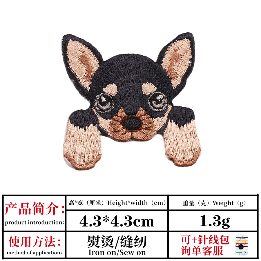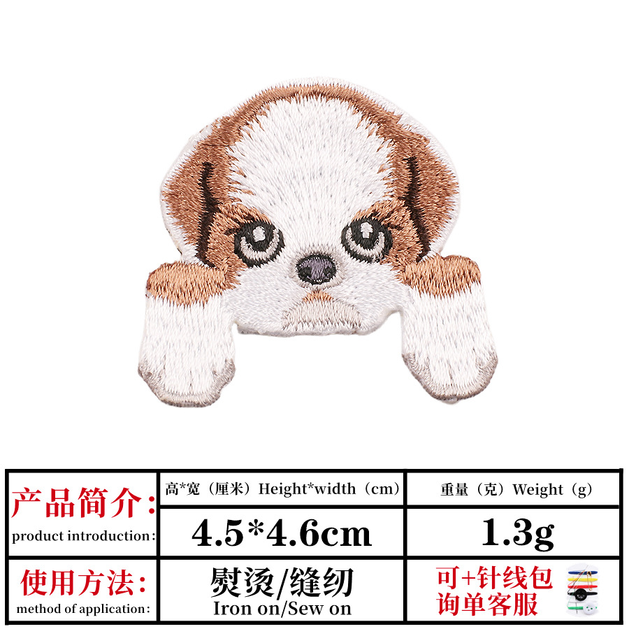 귀여운 강아지 자수 천 스티커 컴퓨터 자수 DIY 핸드 컷 자수 스티커 의류 다림질 장식 패치 스티커