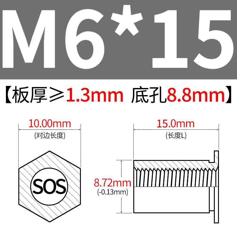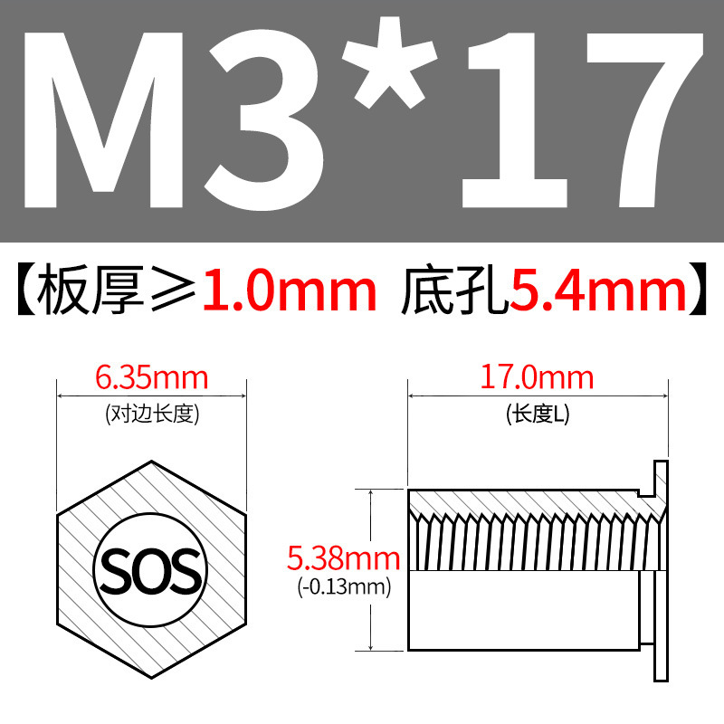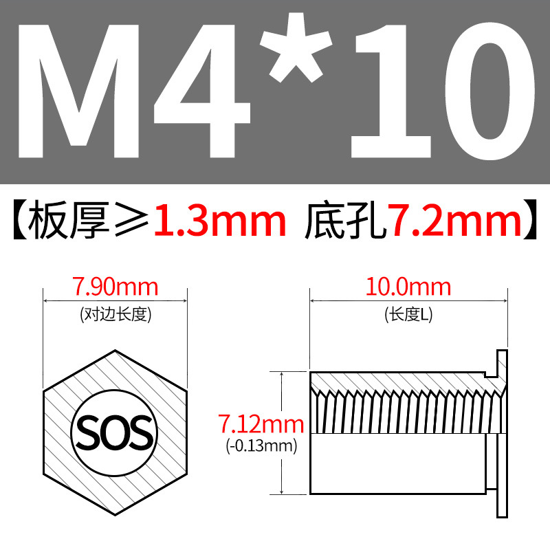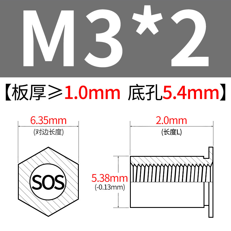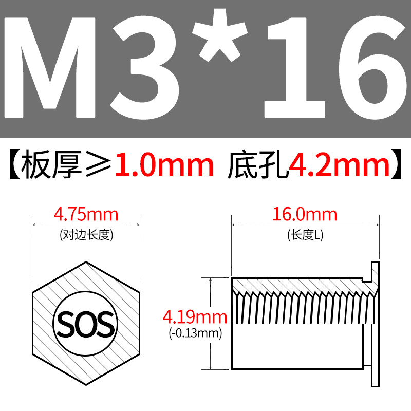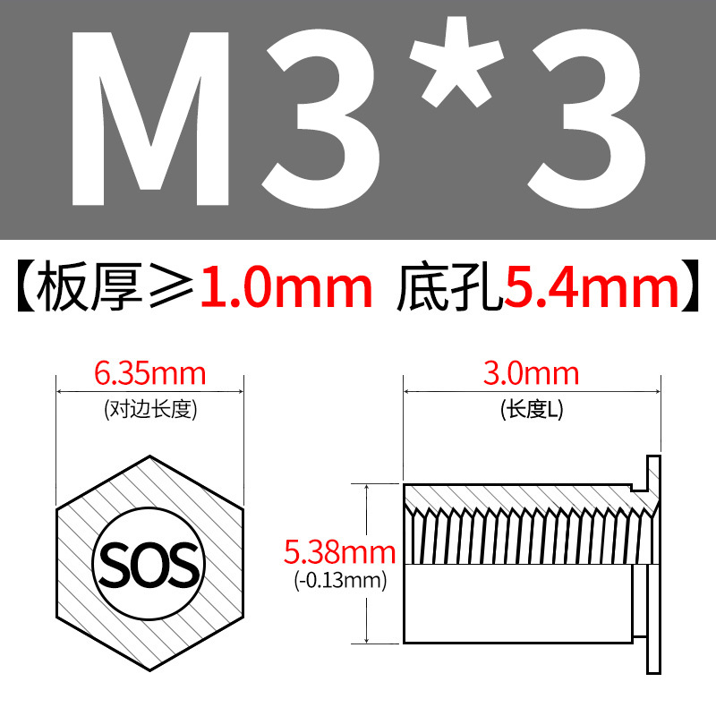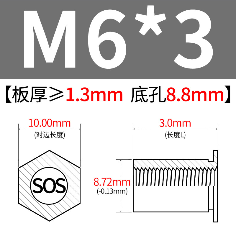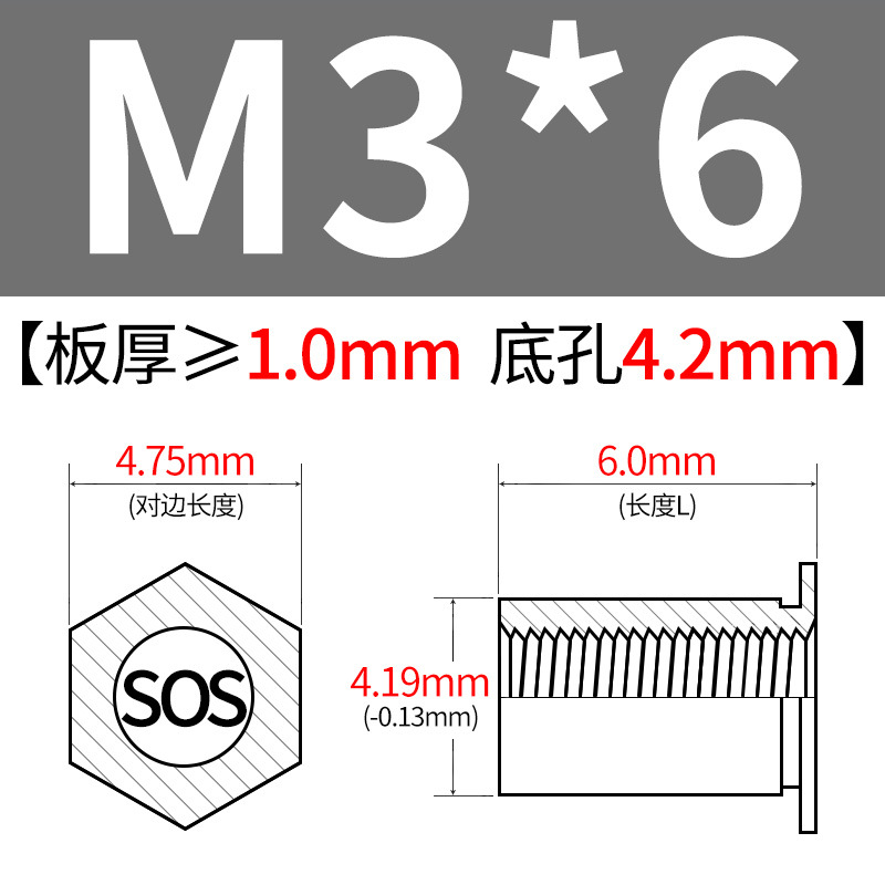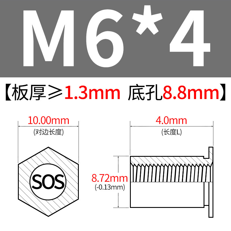스테인레스 스틸 구멍 리벳 스터드 육각형 리벳 칼럼 리벳 너트 칼럼 압력 플레이트 SOS-M2M2.5M3M4M5M6M8스토어 가기
