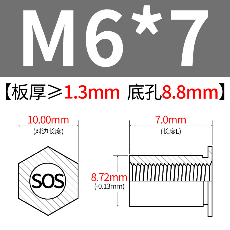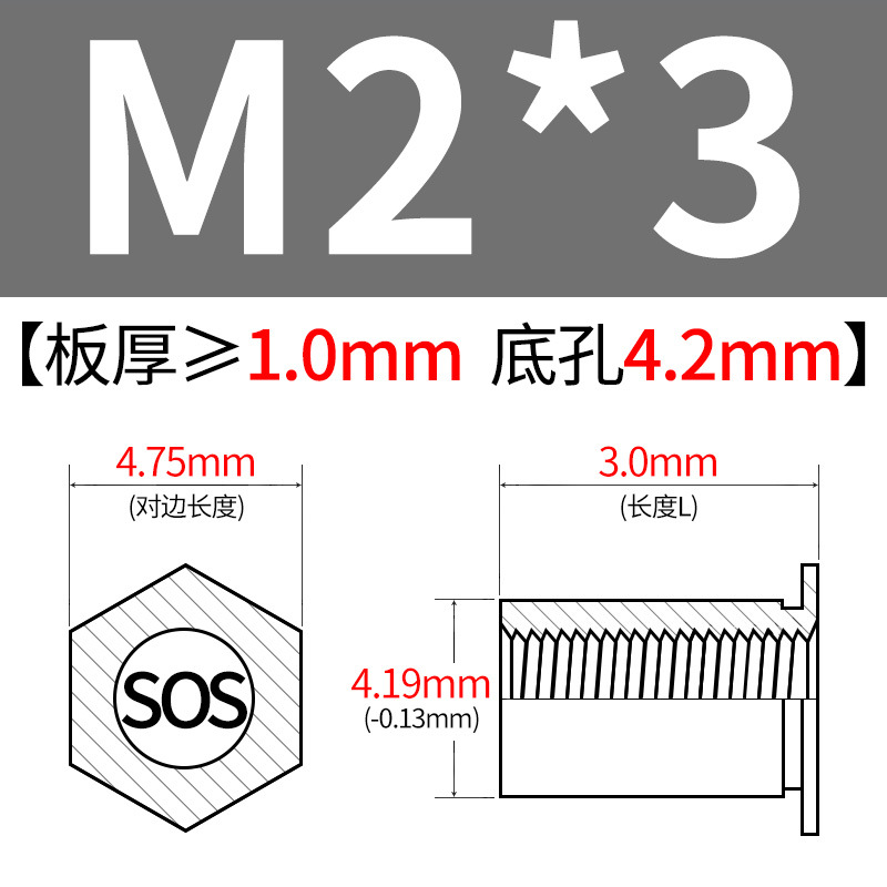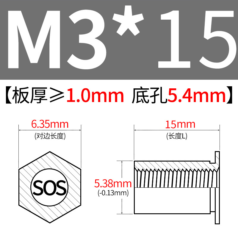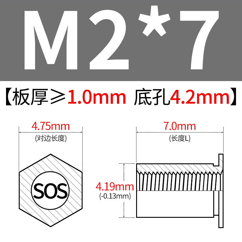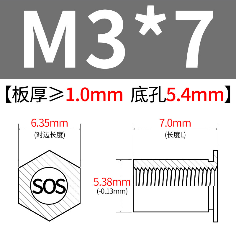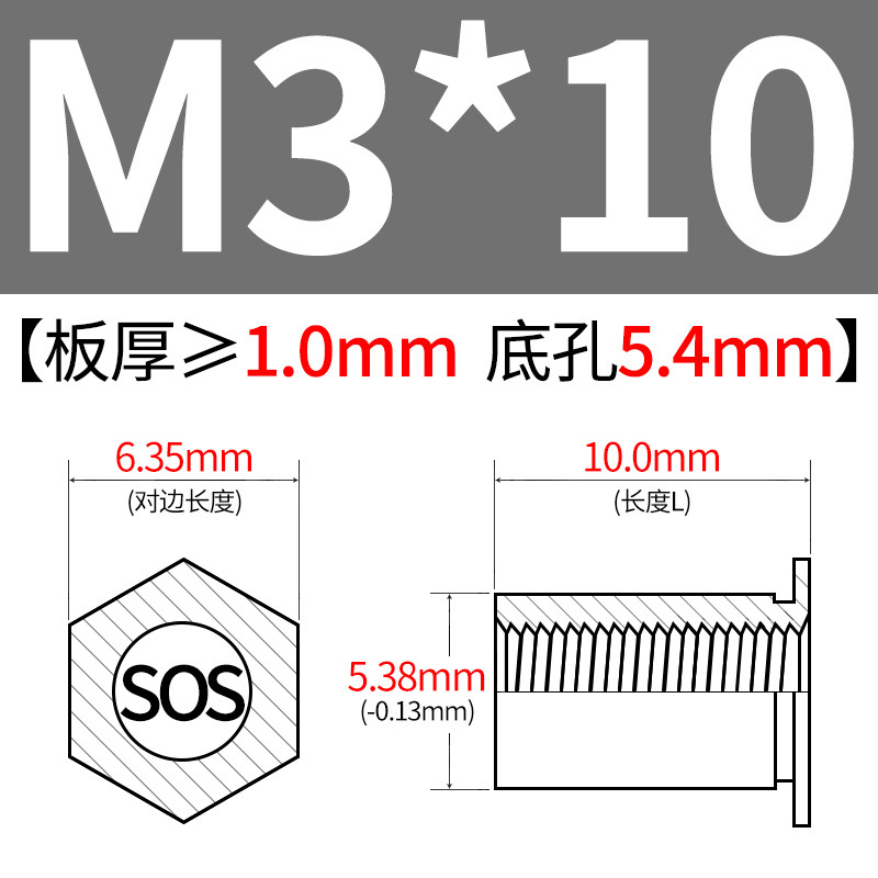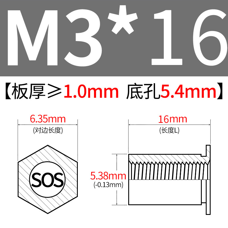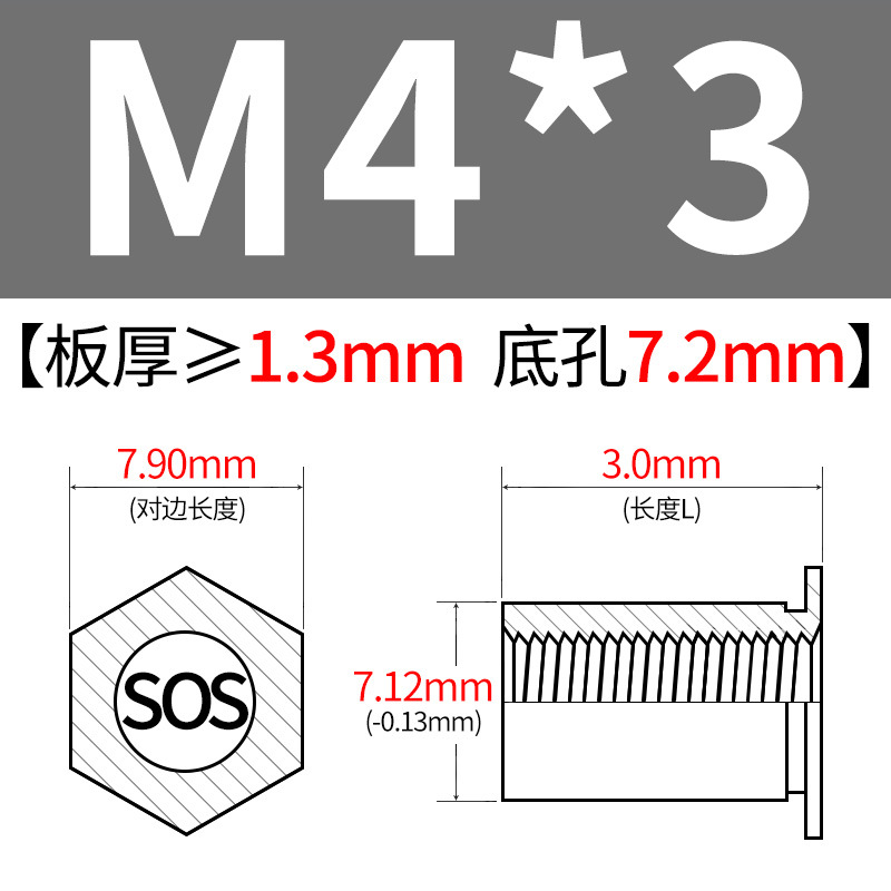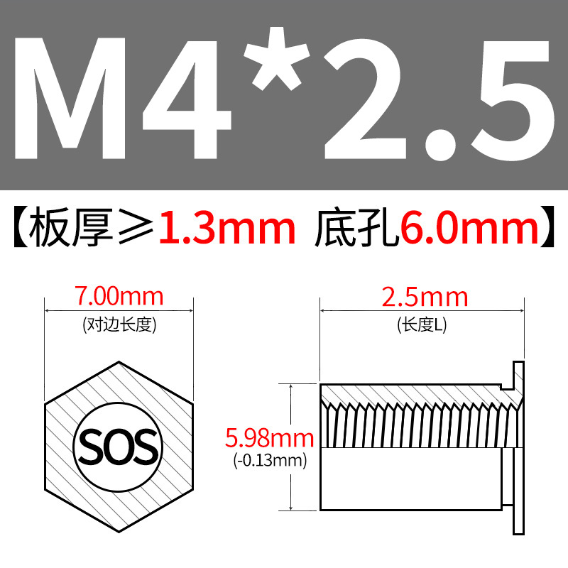 스테인레스 스틸 구멍 리벳 스터드 육각형 리벳 칼럼 리벳 너트 칼럼 압력 플레이트 SOS-M2M2.5M3M4M5M6M8스토어 가기