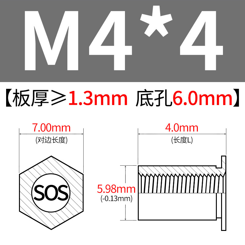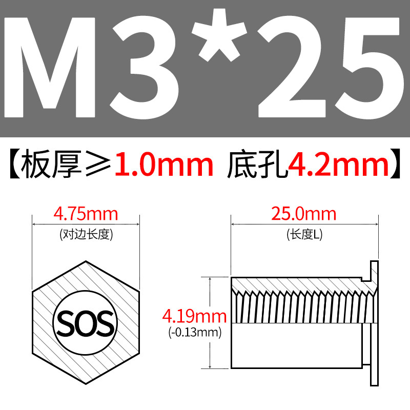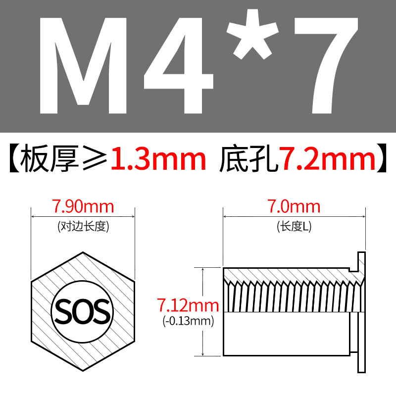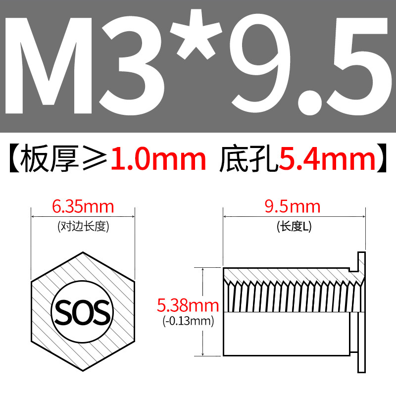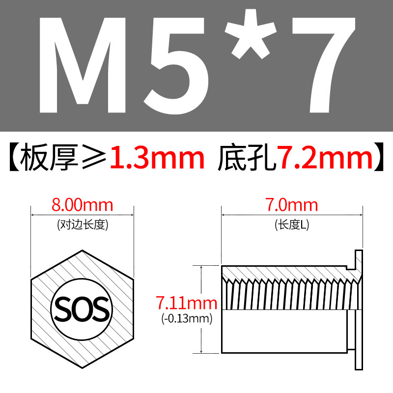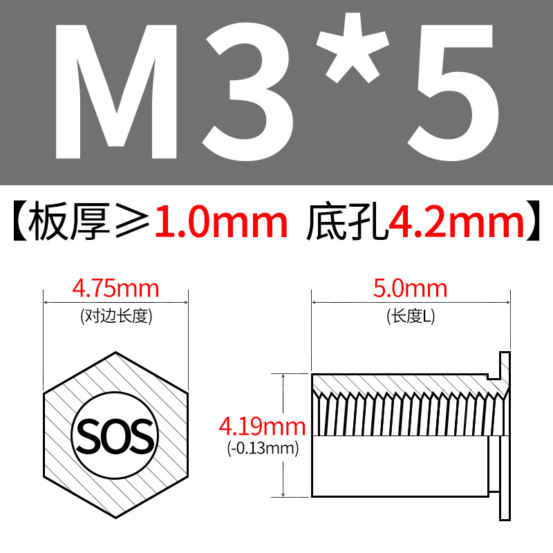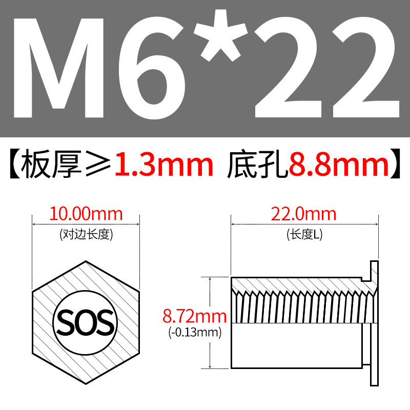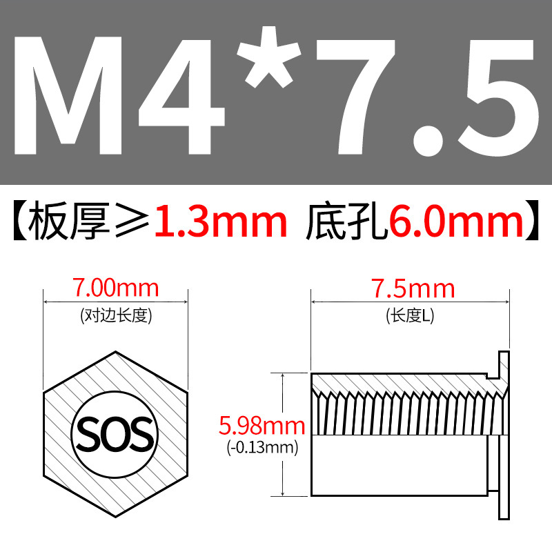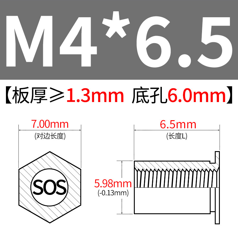 스테인레스 스틸 구멍 리벳 스터드 육각형 리벳 칼럼 리벳 너트 칼럼 압력 플레이트 SOS-M2M2.5M3M4M5M6M8스토어 가기
