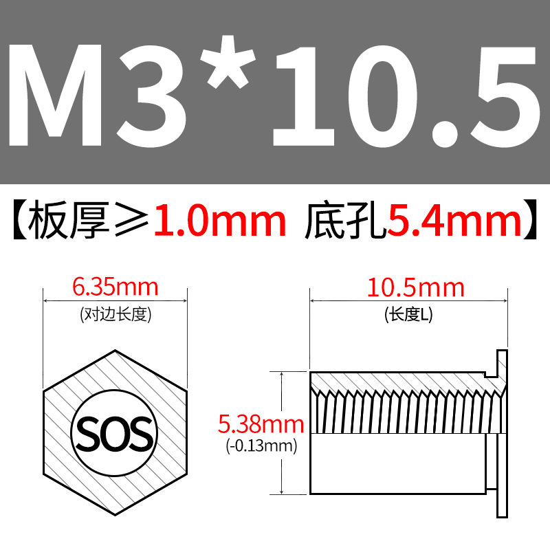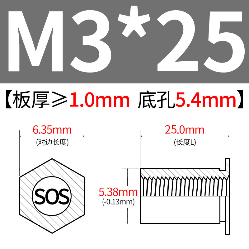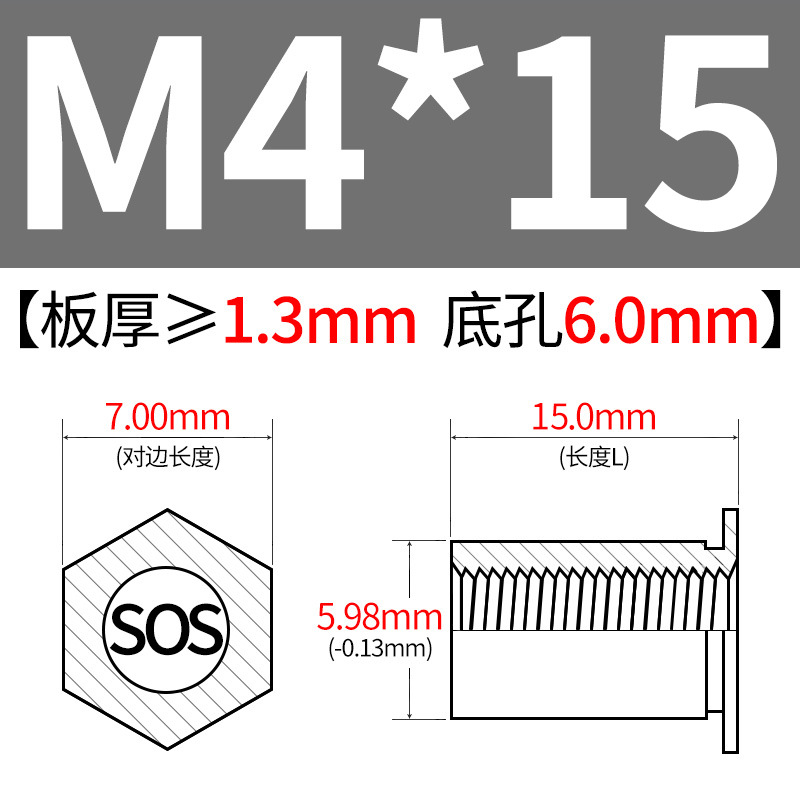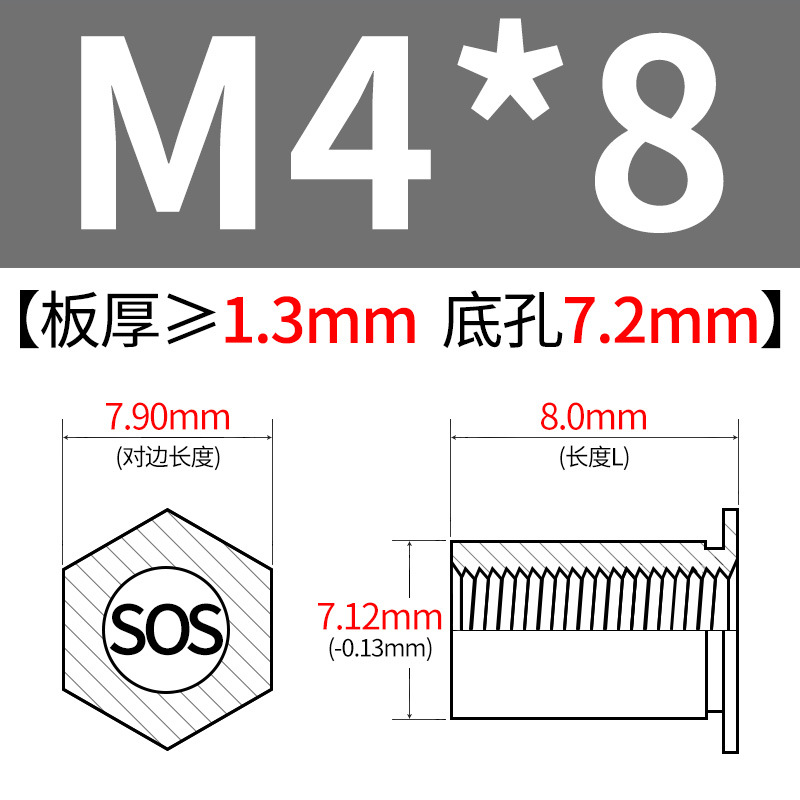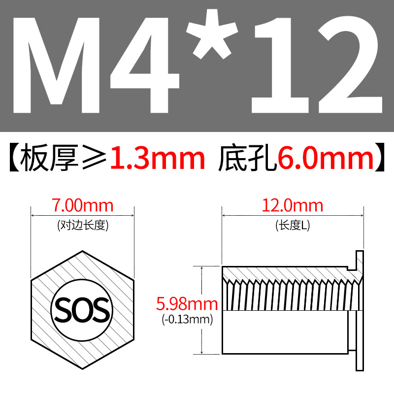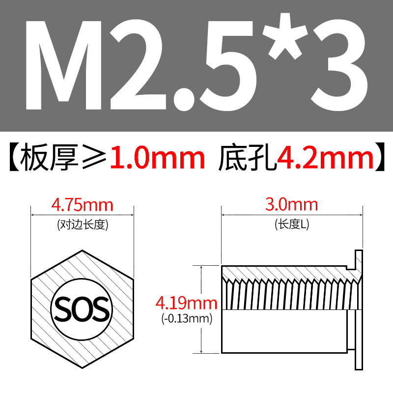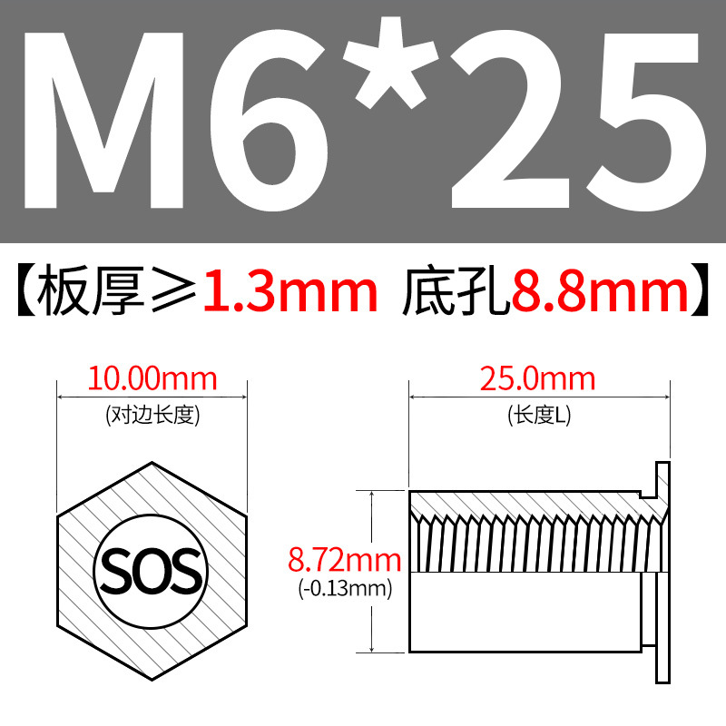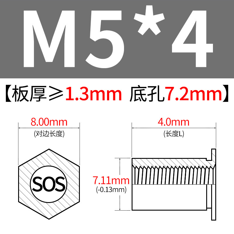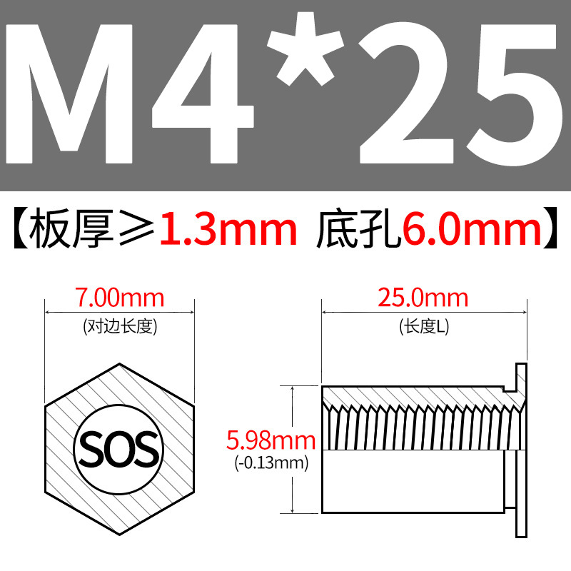 스테인레스 스틸 구멍 리벳 스터드 육각형 리벳 칼럼 리벳 너트 칼럼 압력 플레이트 SOS-M2M2.5M3M4M5M6M8스토어 가기