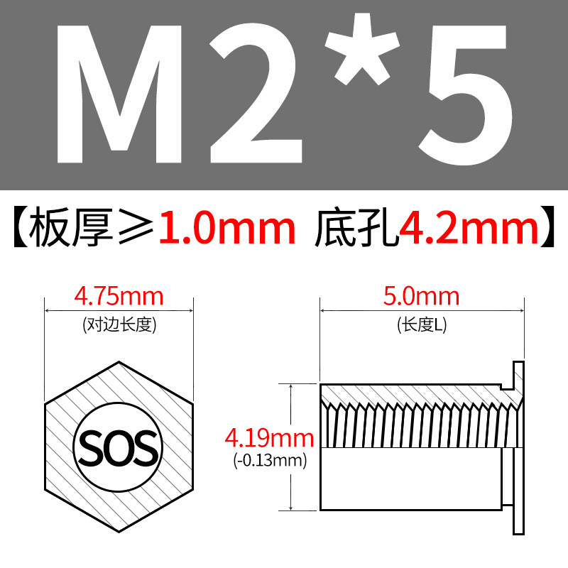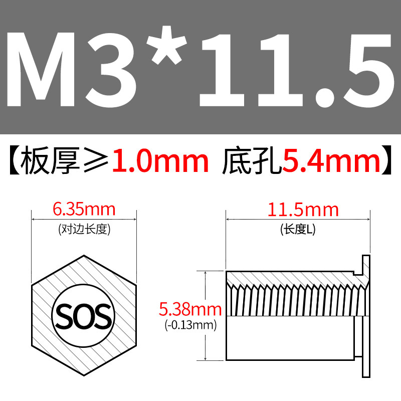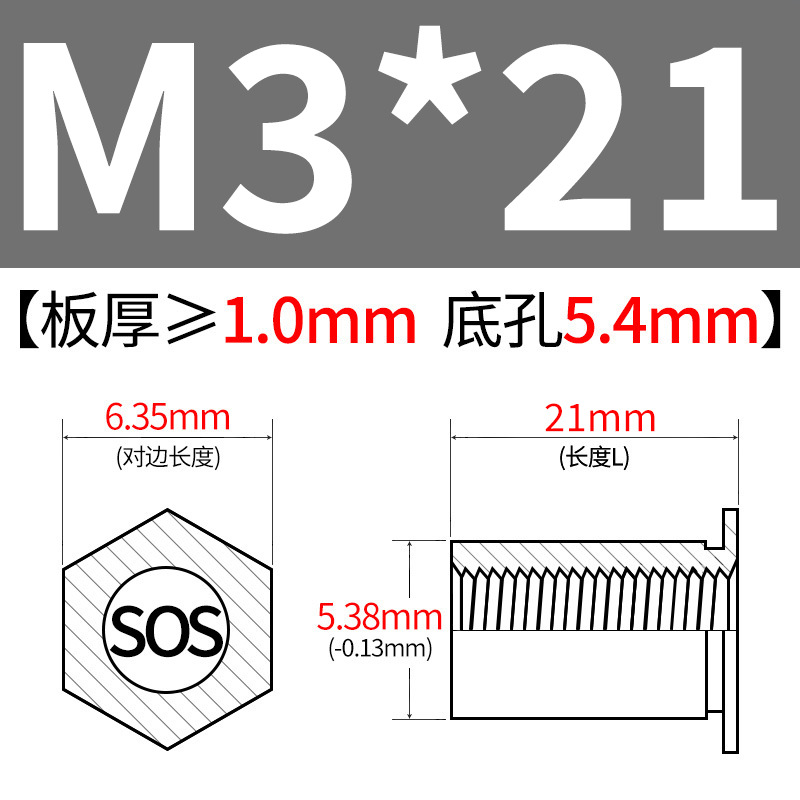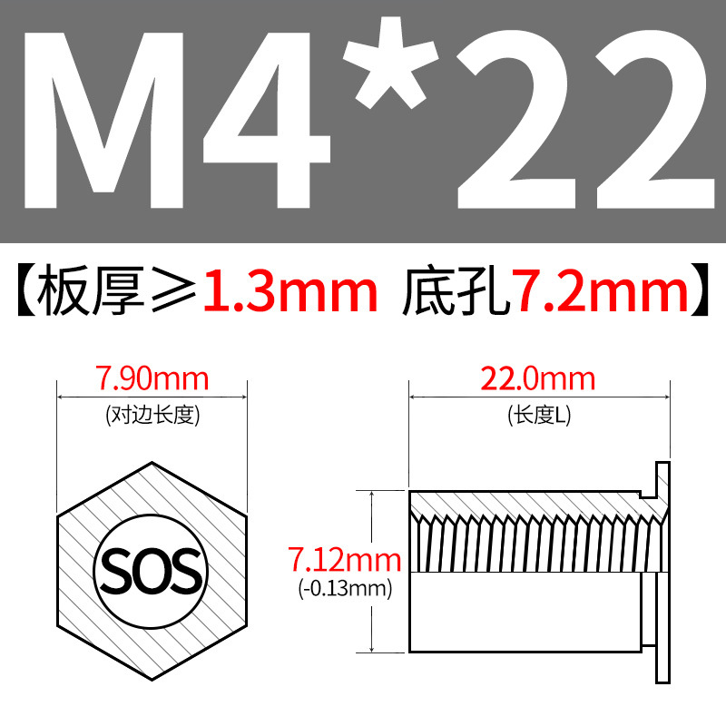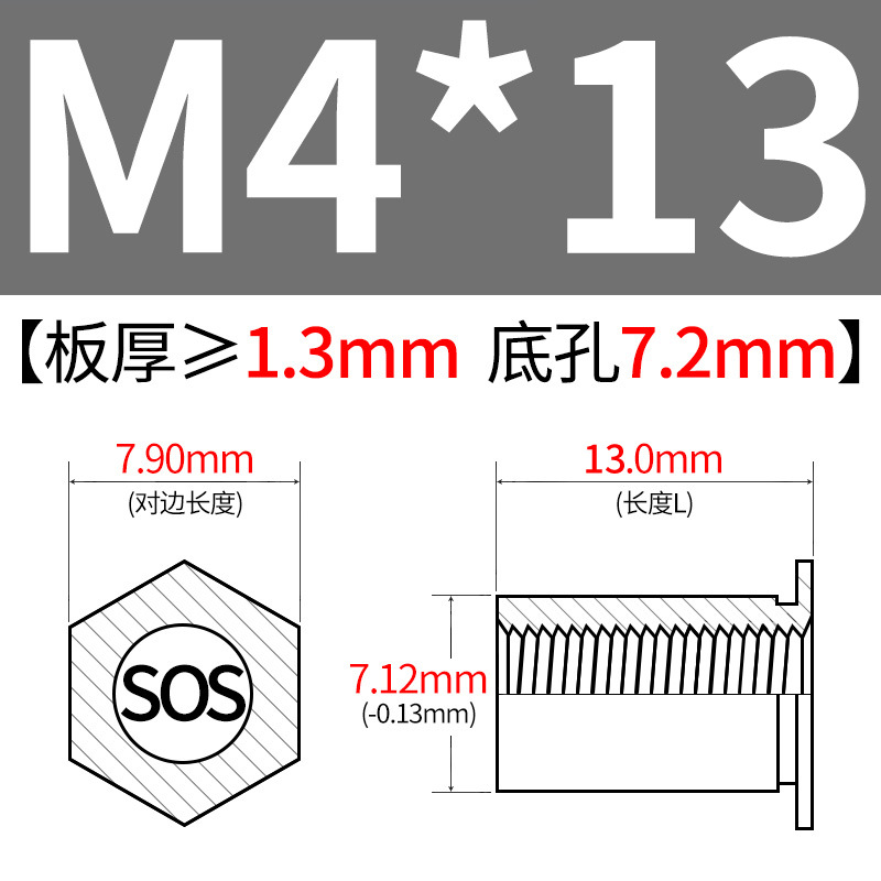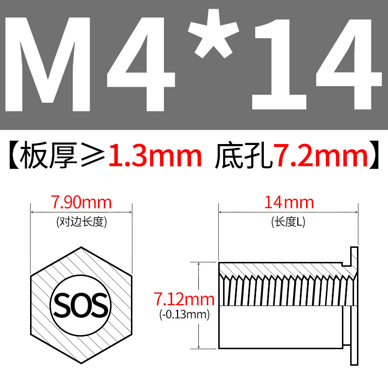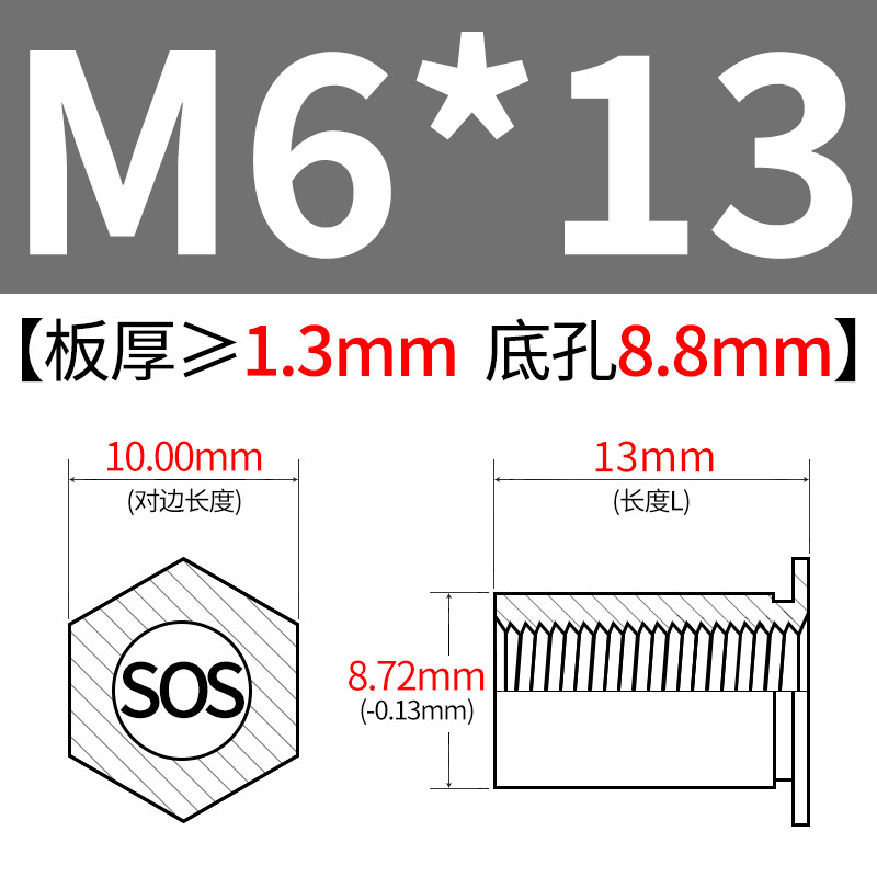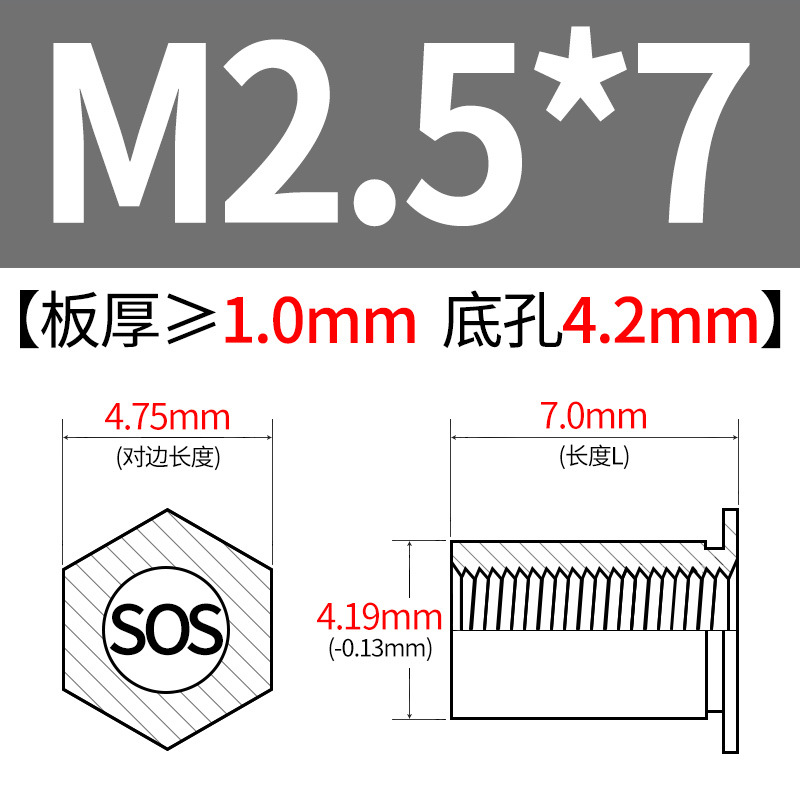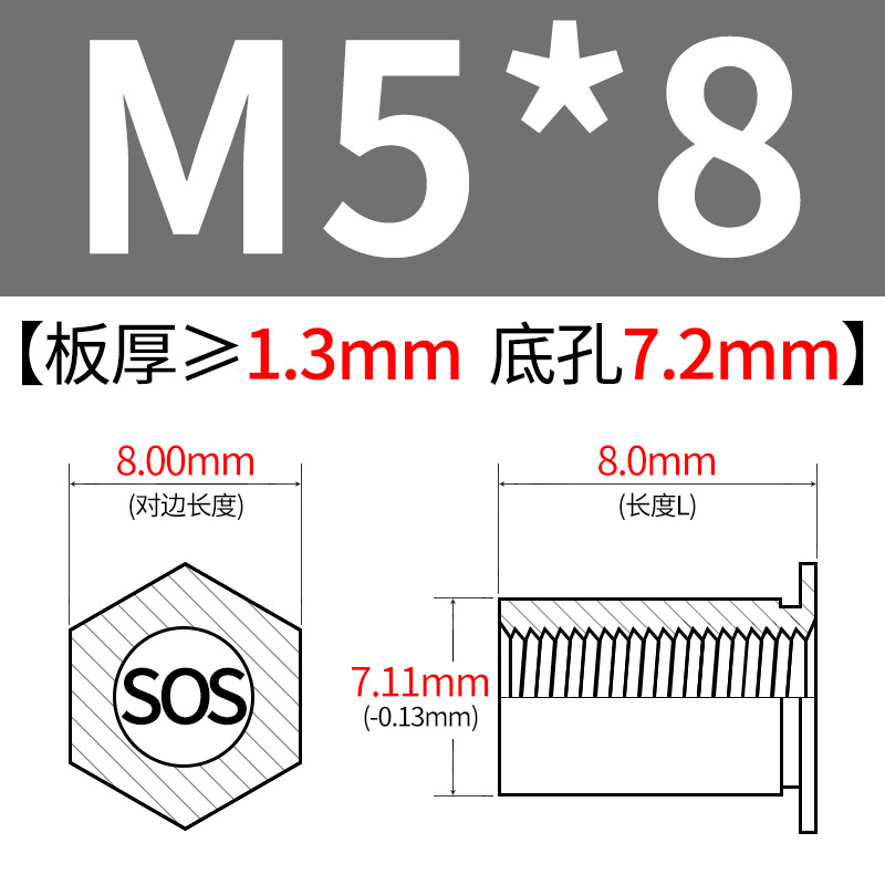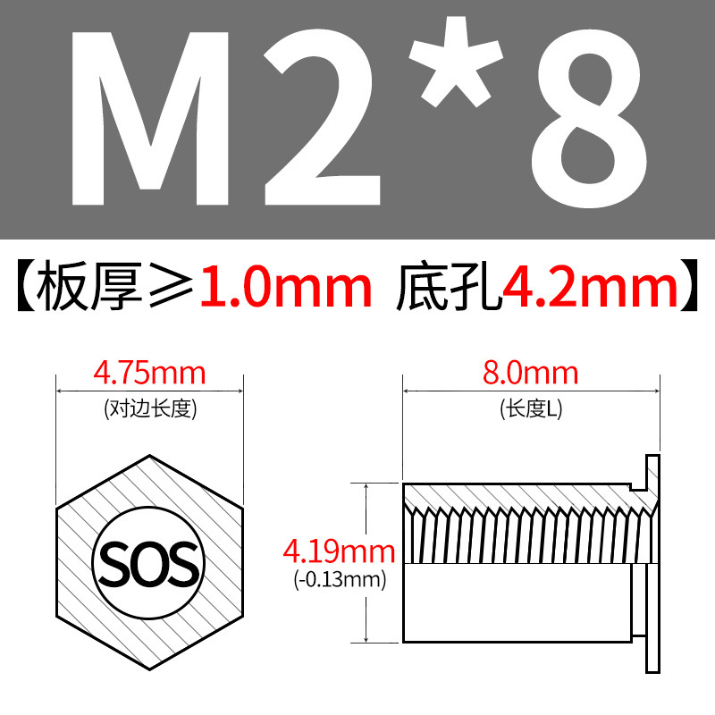 스테인레스 스틸 구멍 리벳 스터드 육각형 리벳 칼럼 리벳 너트 칼럼 압력 플레이트 SOS-M2M2.5M3M4M5M6M8스토어 가기