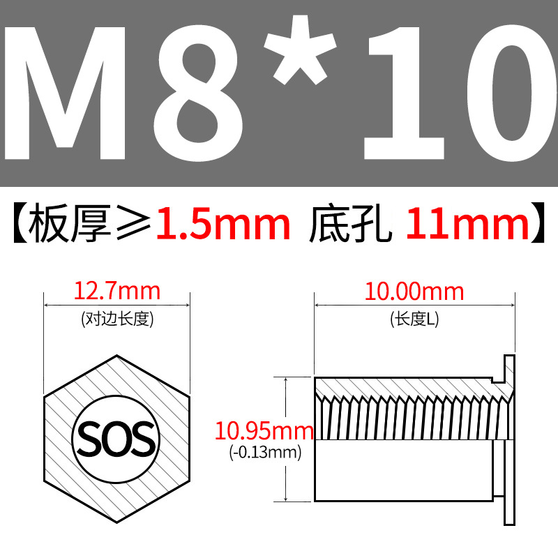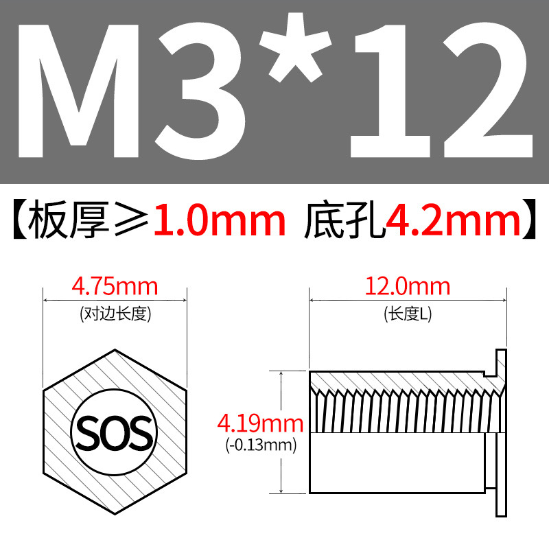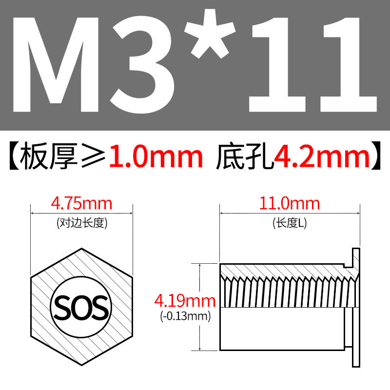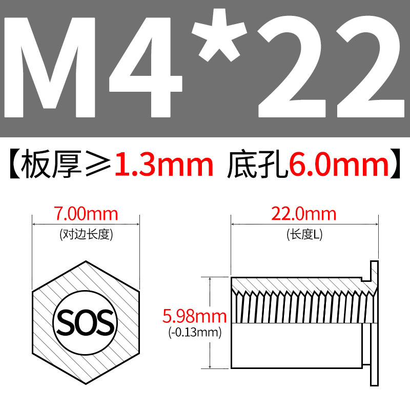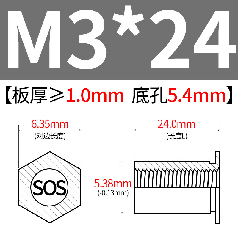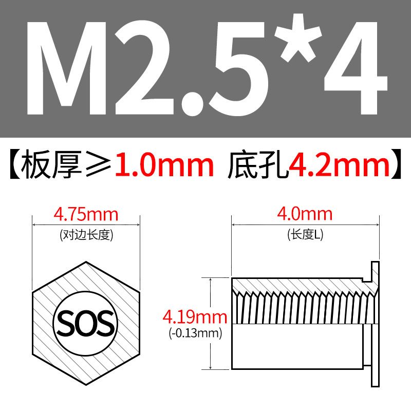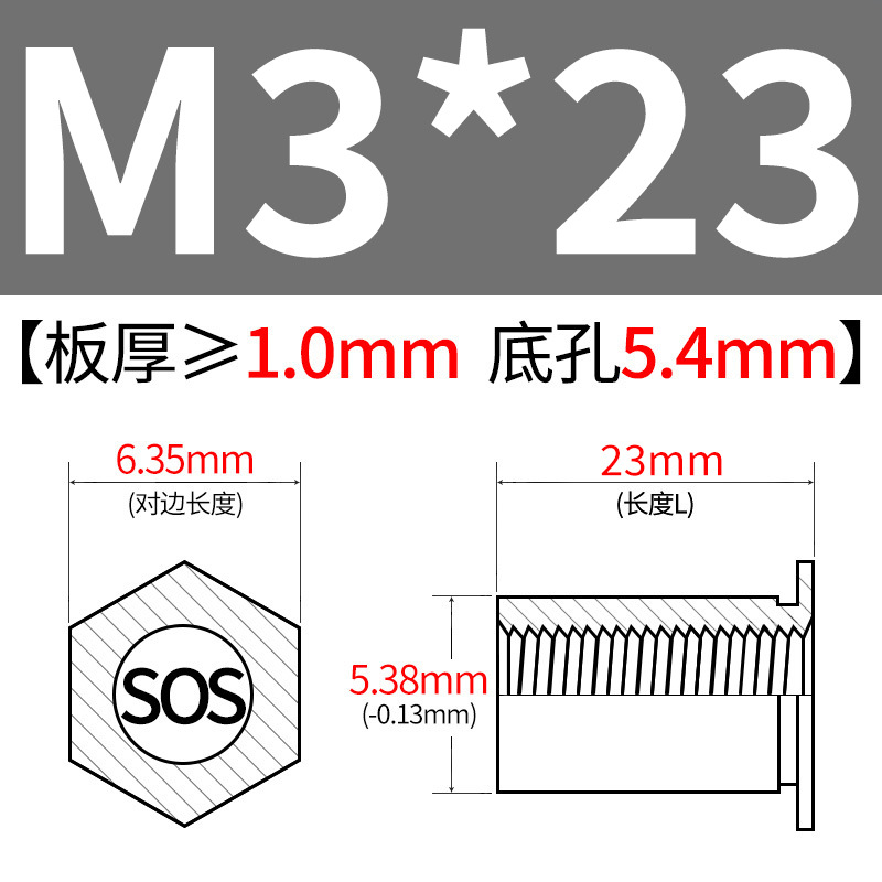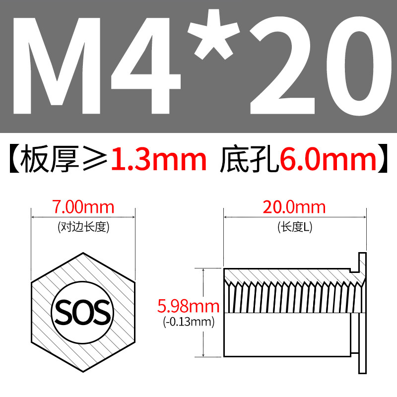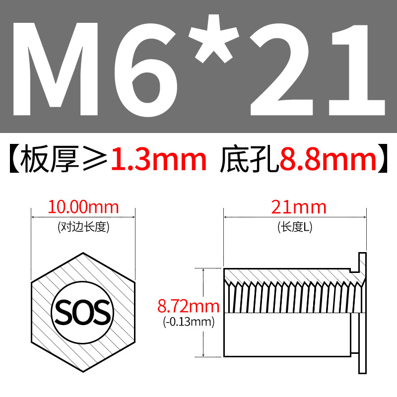 스테인레스 스틸 구멍 리벳 스터드 육각형 리벳 칼럼 리벳 너트 칼럼 압력 플레이트 SOS-M2M2.5M3M4M5M6M8스토어 가기