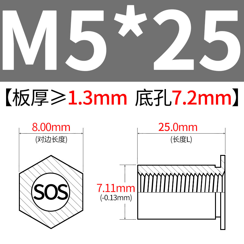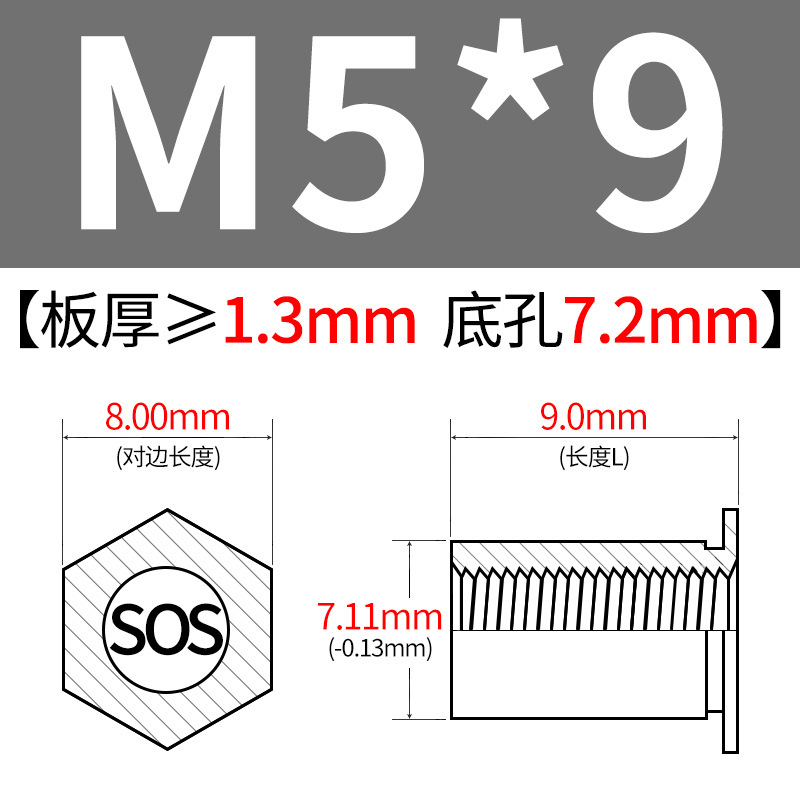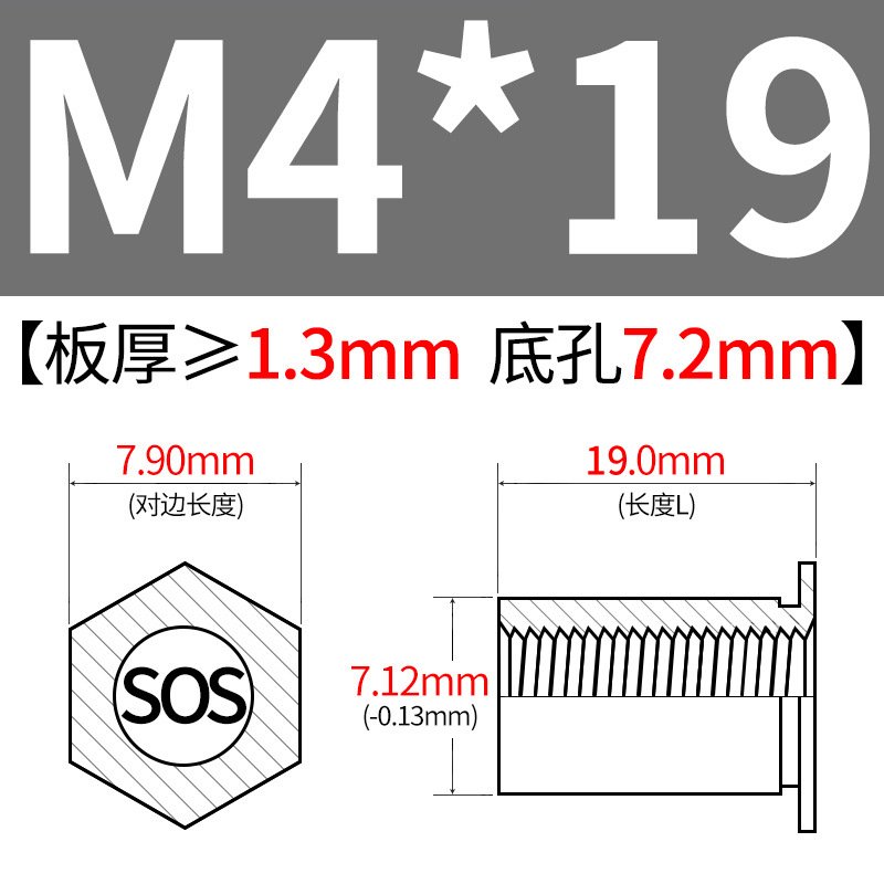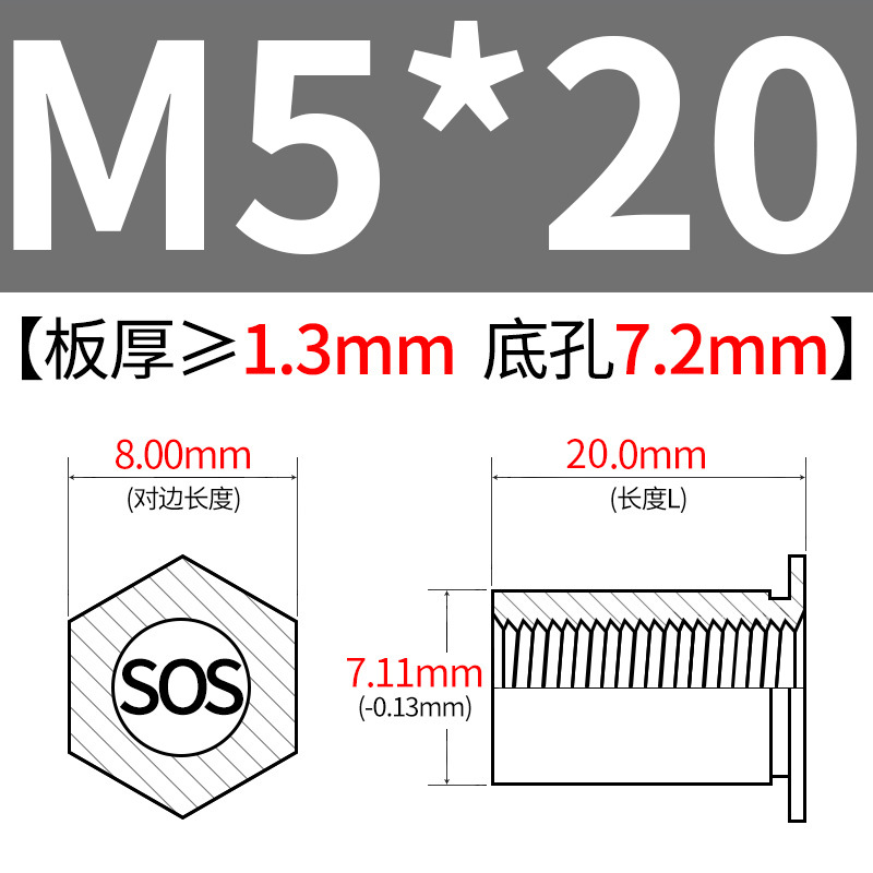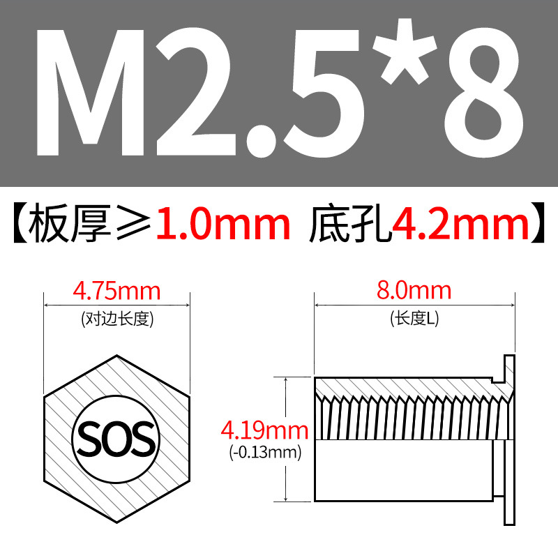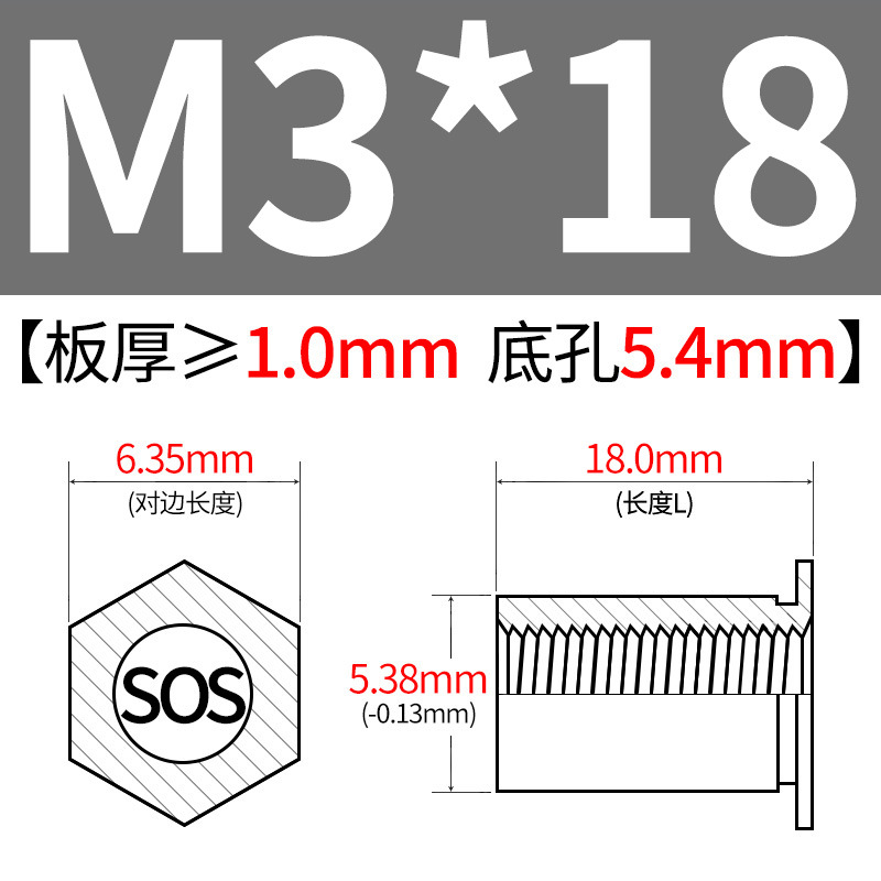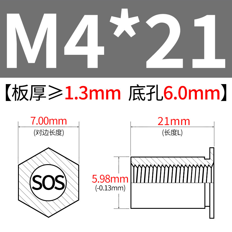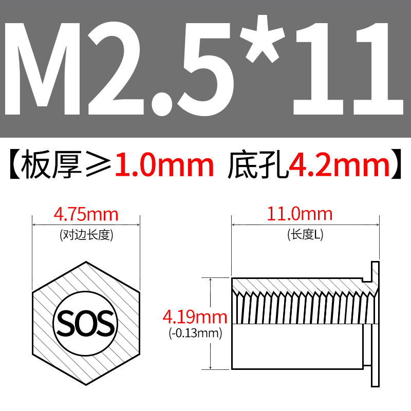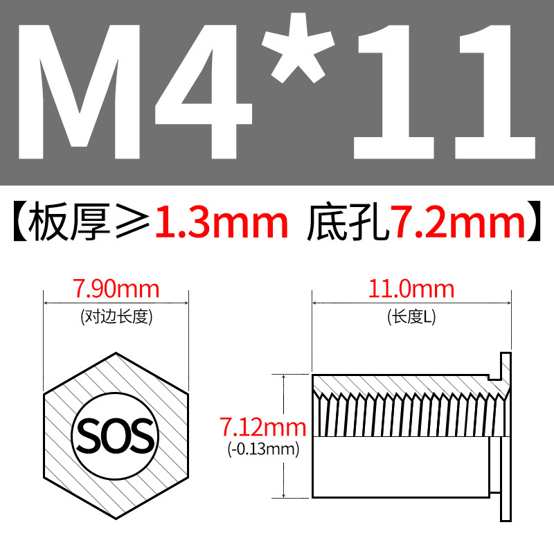 스테인레스 스틸 구멍 리벳 스터드 육각형 리벳 칼럼 리벳 너트 칼럼 압력 플레이트 SOS-M2M2.5M3M4M5M6M8스토어 가기