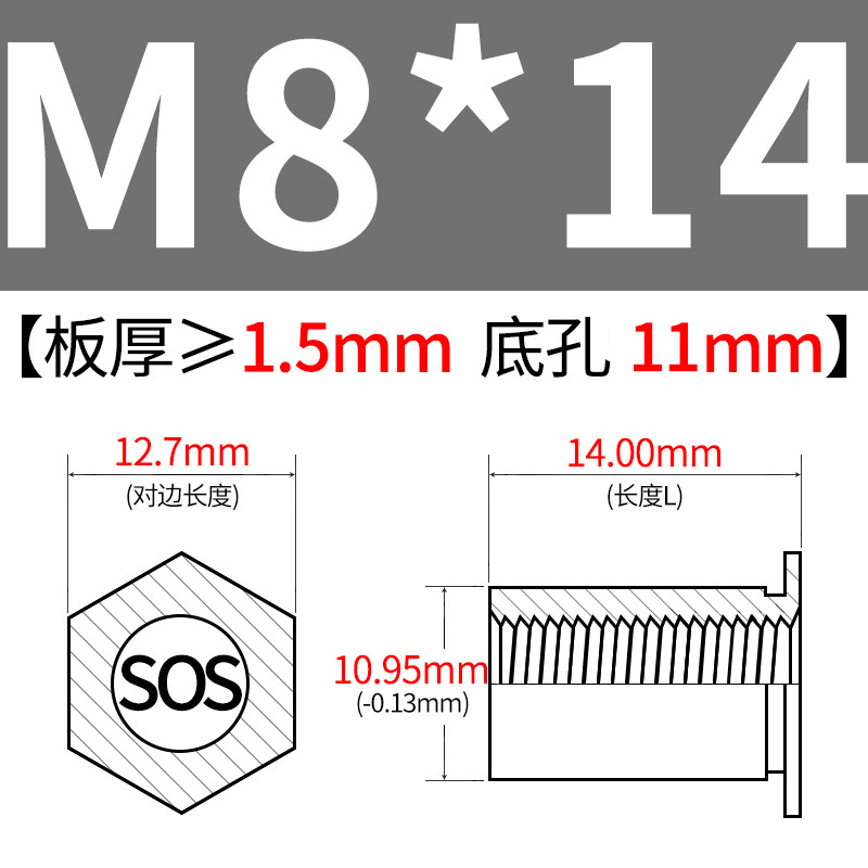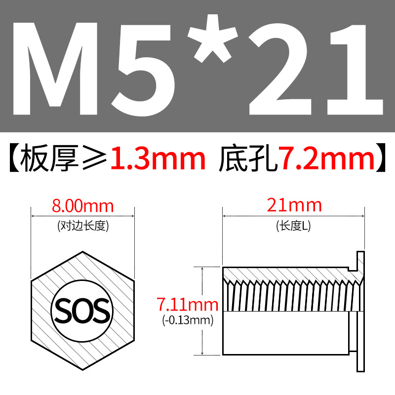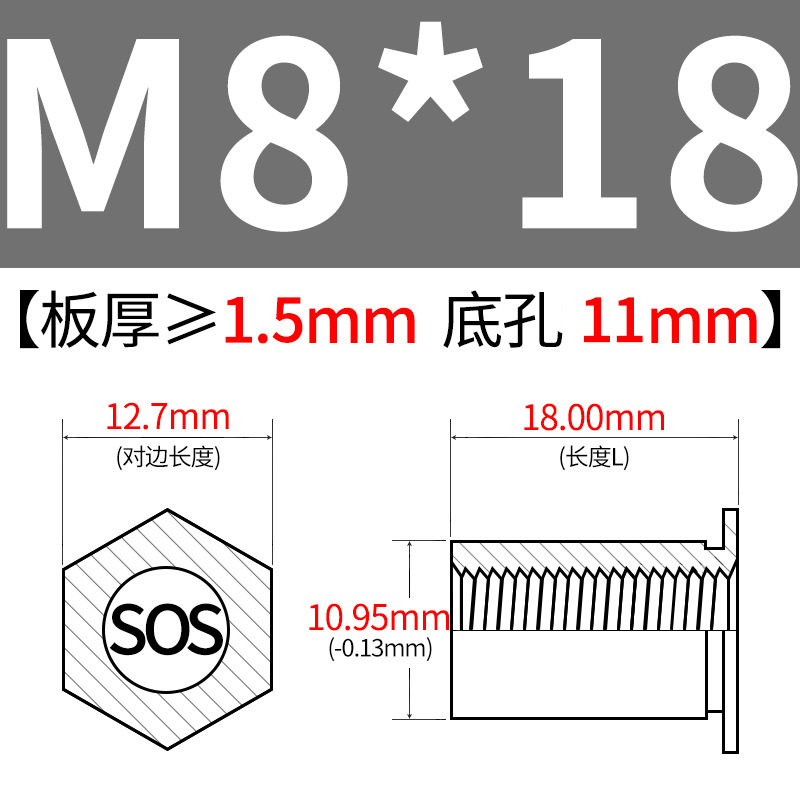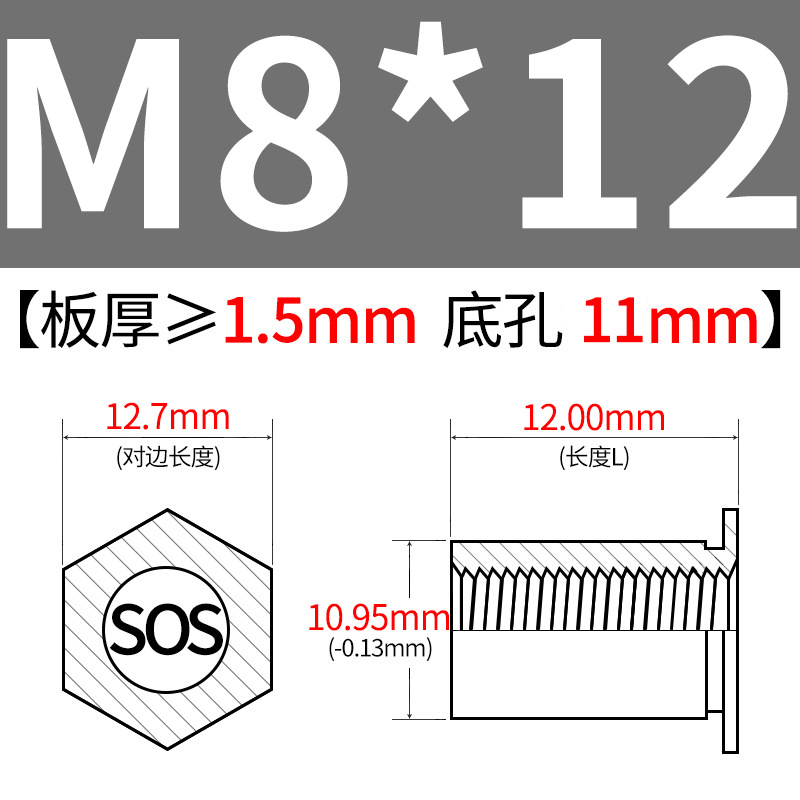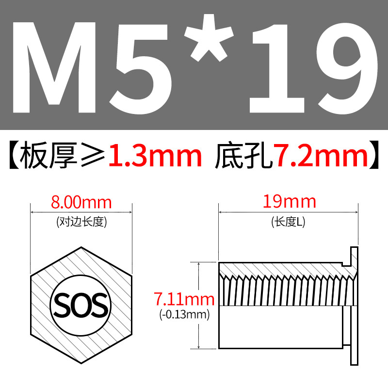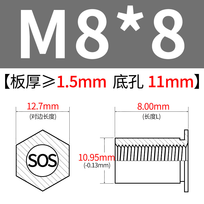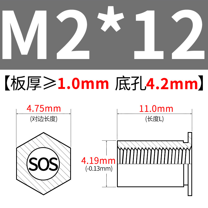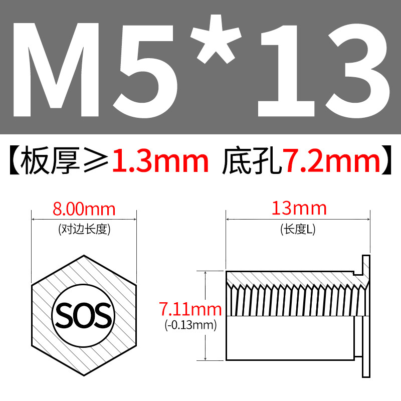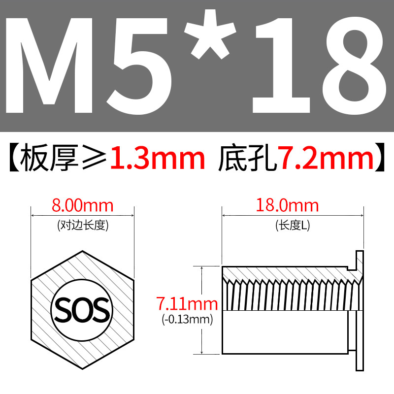 스테인레스 스틸 구멍 리벳 스터드 육각형 리벳 칼럼 리벳 너트 칼럼 압력 플레이트 SOS-M2M2.5M3M4M5M6M8스토어 가기
