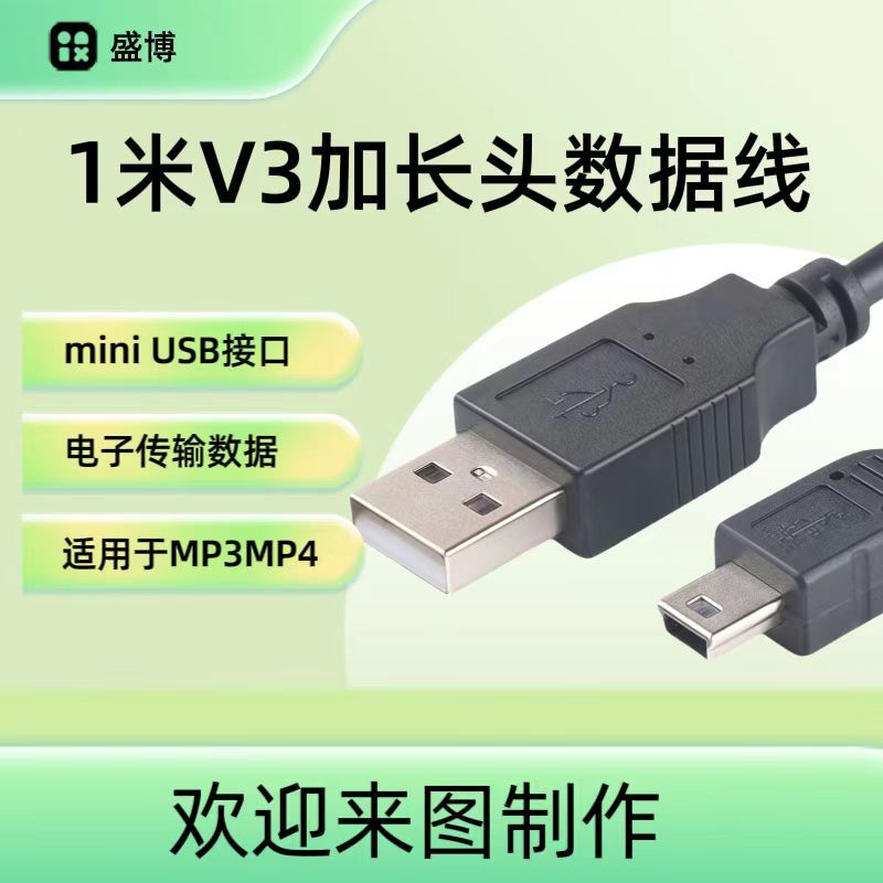 适用于:mini USB接口的手机及其它接口为mini USB的电子设备与电脑传输数据和充电,适用于:MP3/MP4/MP5等电子设备