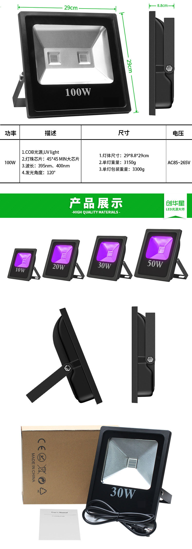 핫 세일 크로스보더 LED 자외선 투광등 형광 검사 UV 경화등 바 분위기 고출력 자외선등