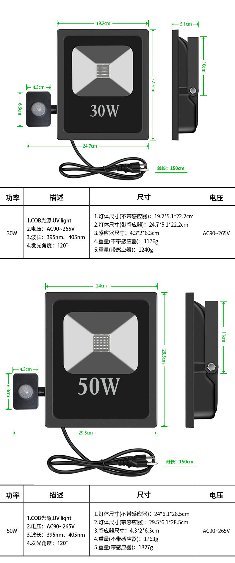 핫 세일 크로스보더 LED 자외선 투광등 형광 검사 UV 경화등 바 분위기 고출력 자외선등스토어 가기