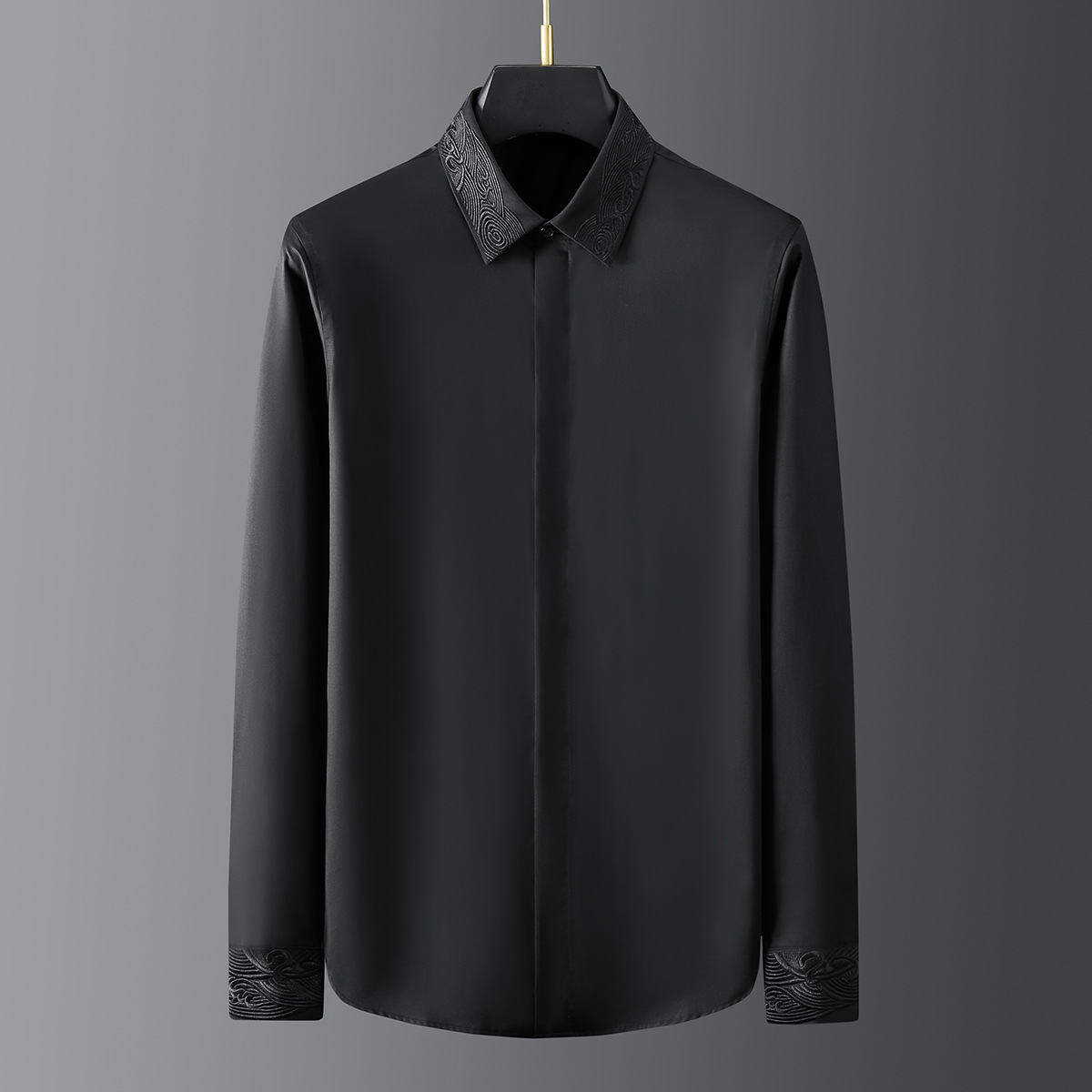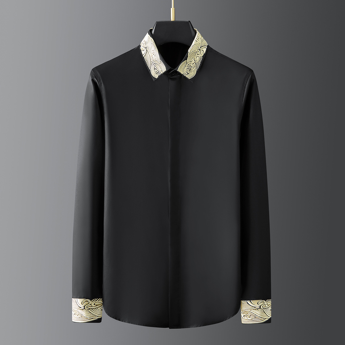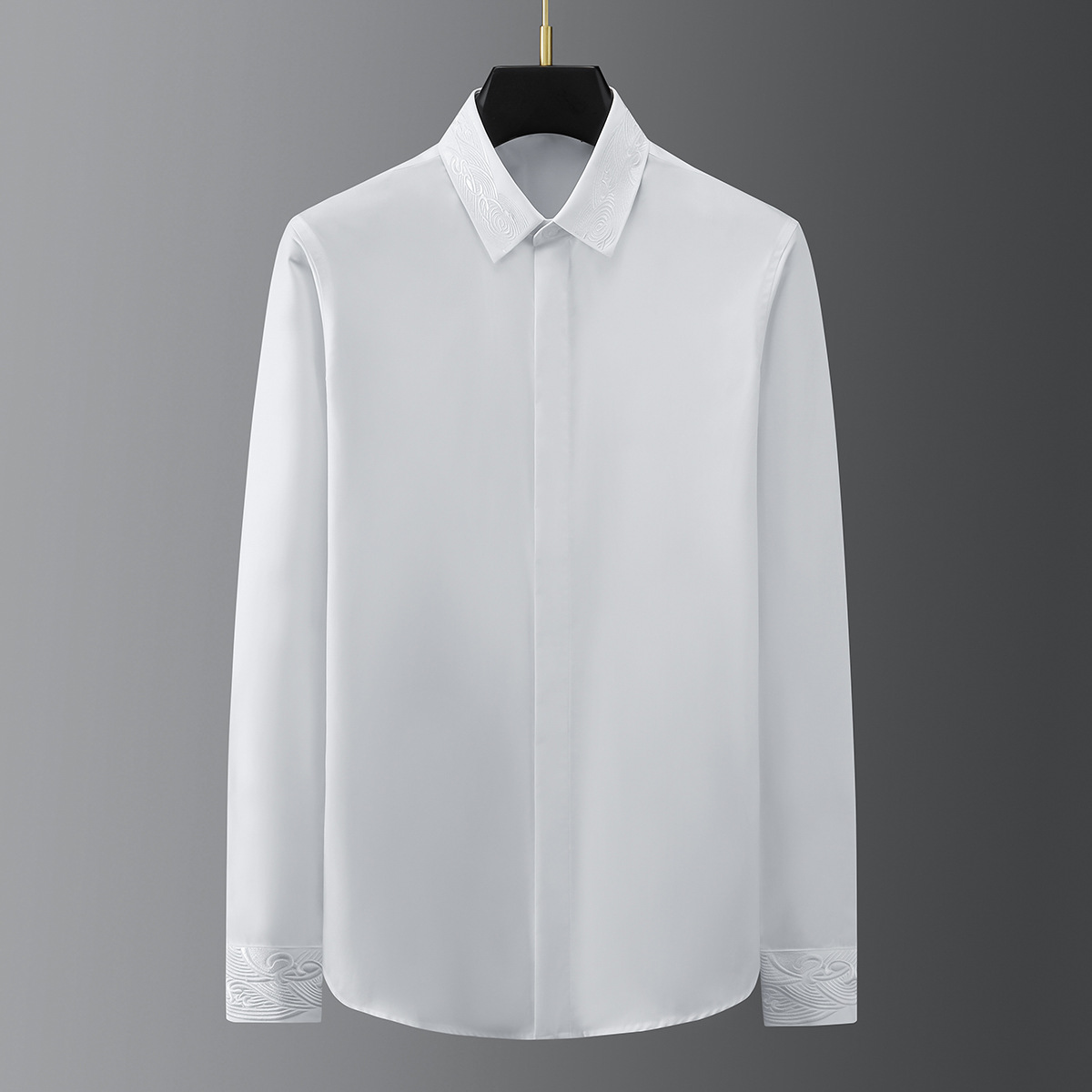 유럽과 미국 패션 패션 브랜드 긴 소매 만 바늘 자수 리더 자수 개성 긴 소매 흑백 2 색 슬림핏 남성 셔츠