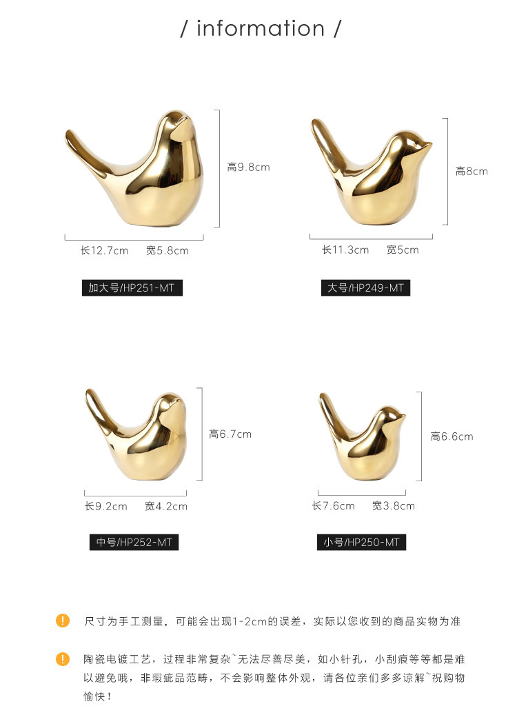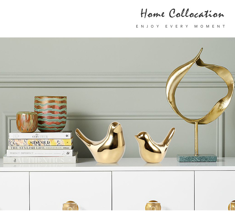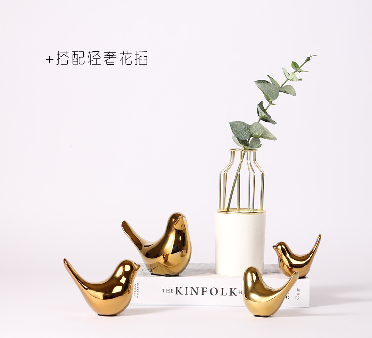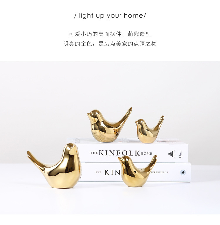 북유럽 크리에이 티브 황금 세라믹 새 공예 작은 장식품 거실 부드러운 장식 데스크탑 크로스 국경 장식 도매